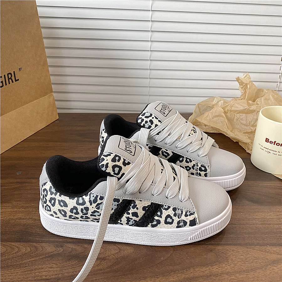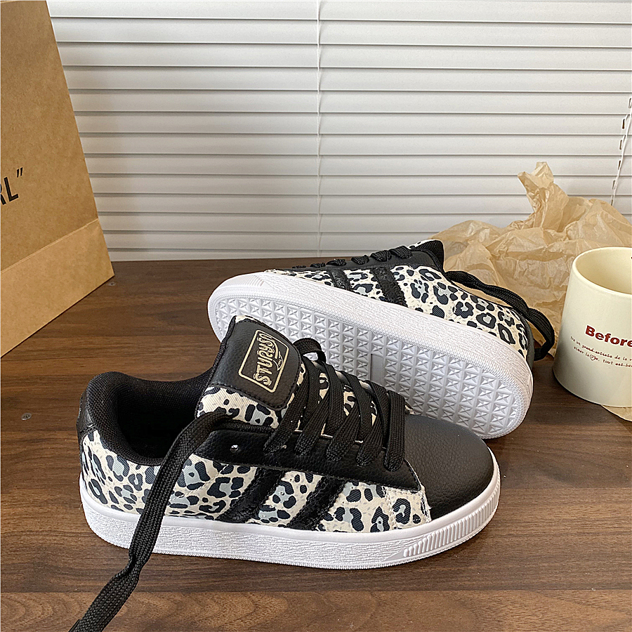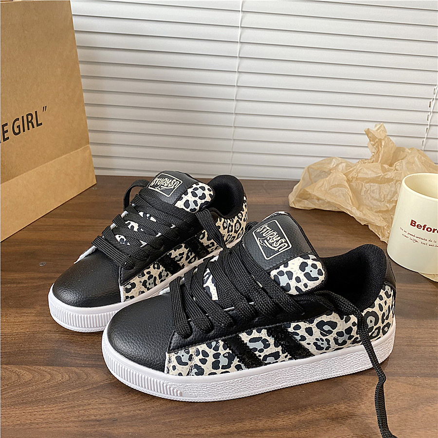 港风原创黑色豹纹滑板面包鞋女ins潮百搭运动休闲板鞋子2025新款