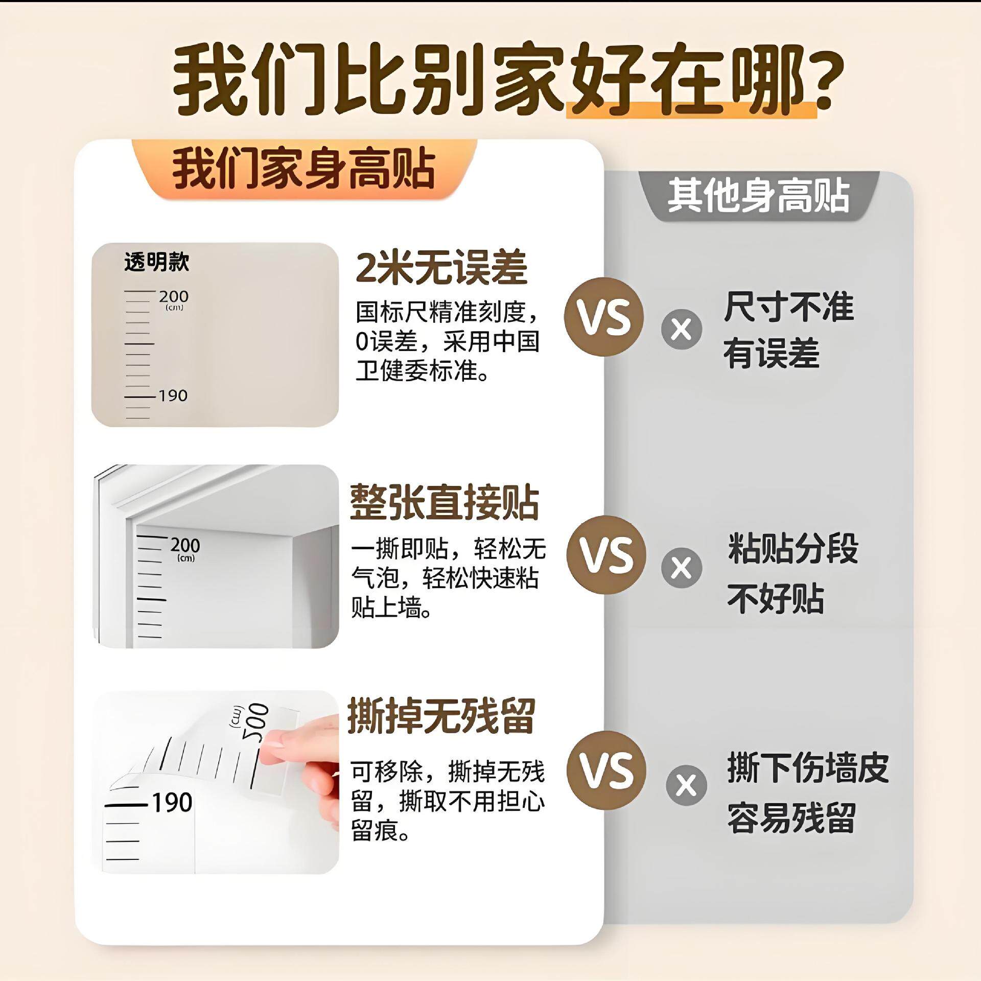 身高贴2米儿童量身高墙贴成人透明测量身高贴纸不伤墙家用可移除