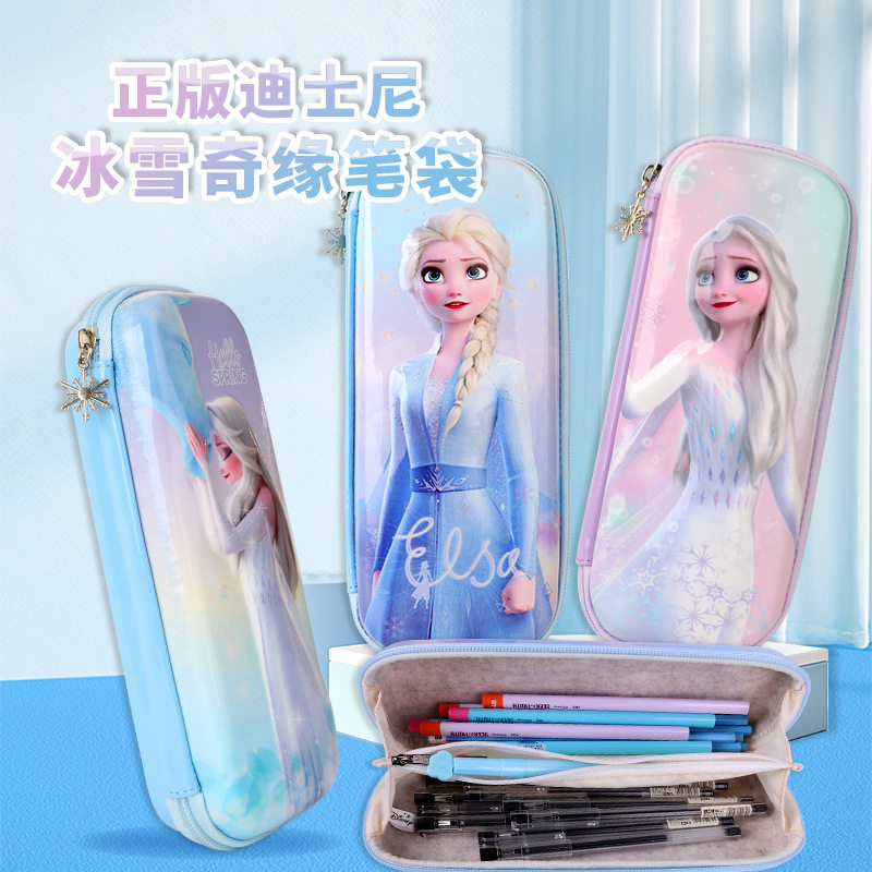 2025新款迪士尼学生笔袋文具盒冰雪奇缘艾莎公主女孩小学生文具袋一二年级儿童幼儿园女童铅笔盒爱莎女孩款