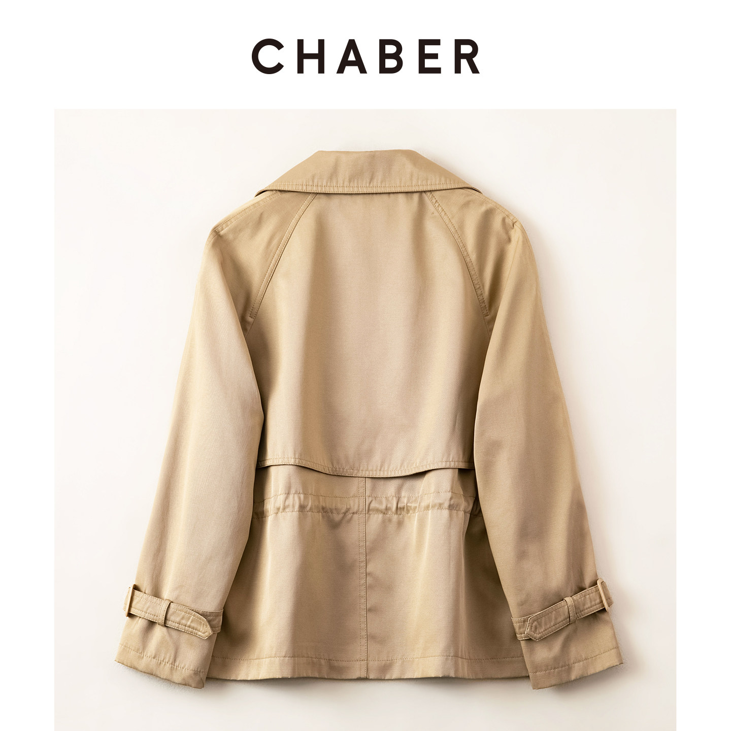 CHABER巧帛秋季新款女双排扣短款风衣简约抽绳宽松纯色西装领外套