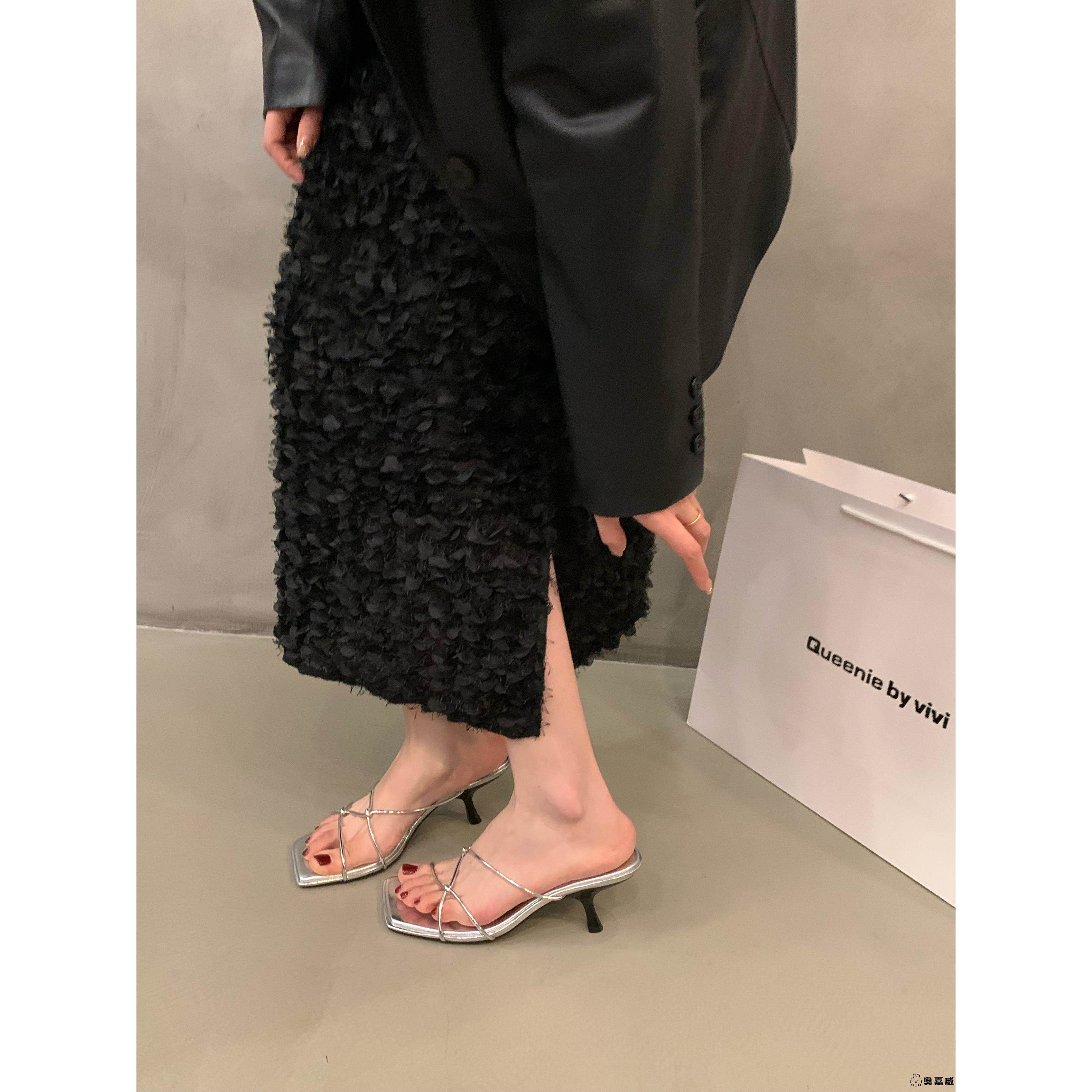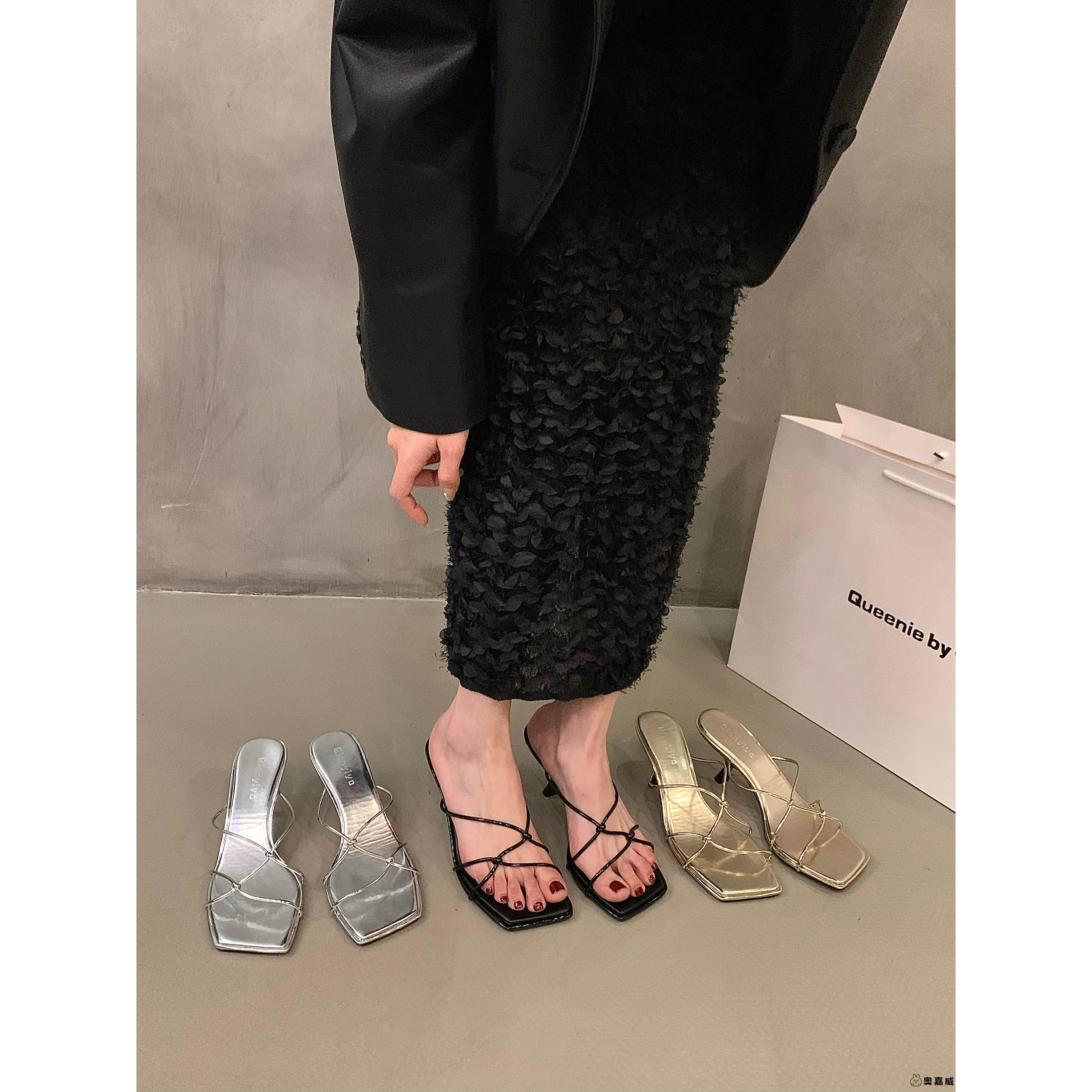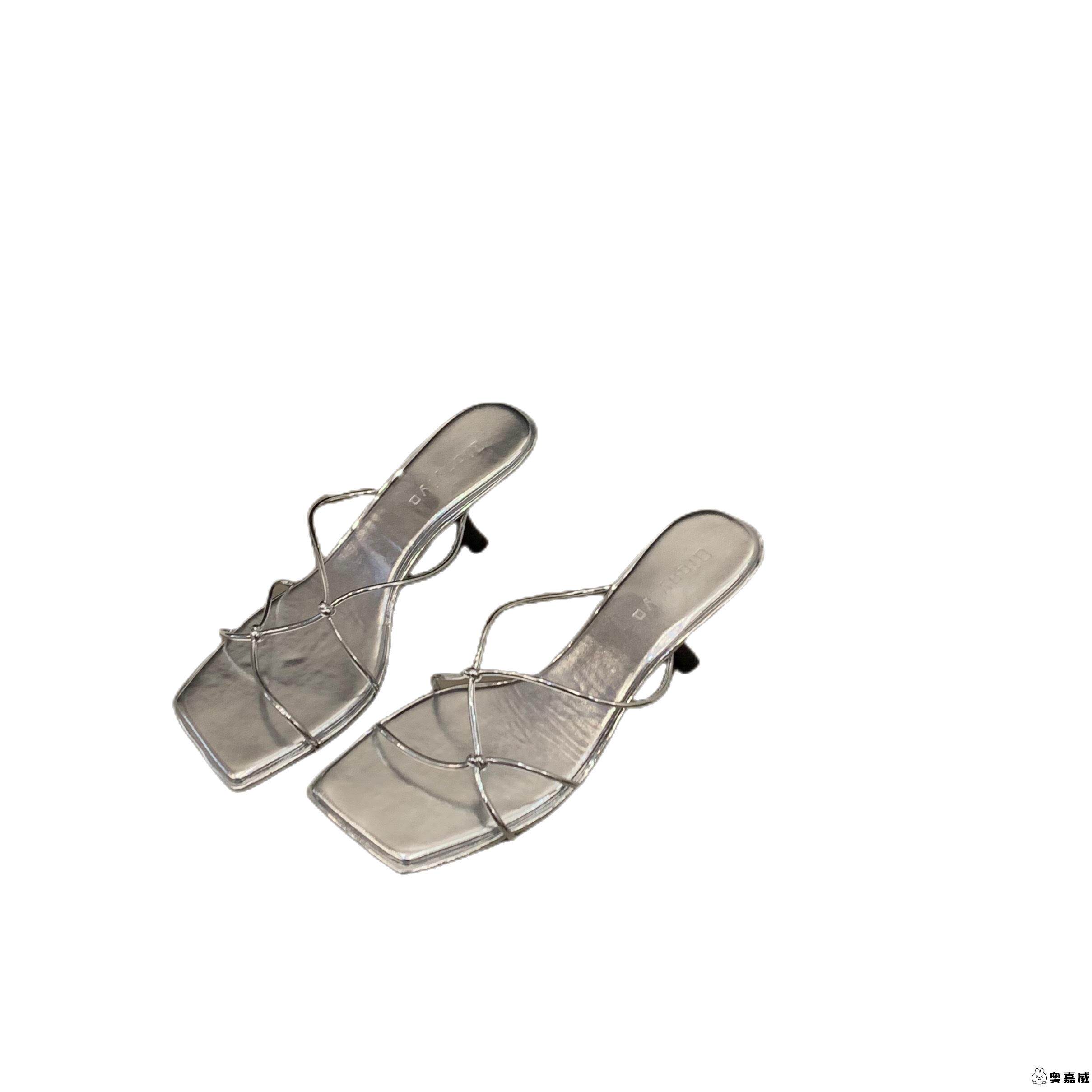 法式小众高级感银色凉拖鞋外穿仙女鞋子2025年新款秋季高跟鞋凉鞋