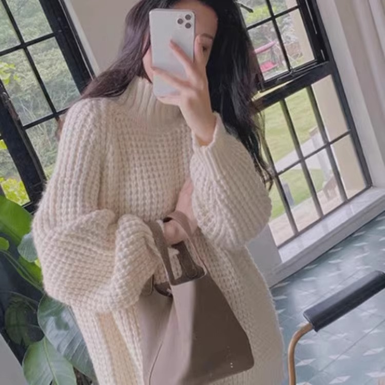 秋冬季加厚高领软糯毛衣女ins中长款设计感慵懒风宽松外穿针织衫