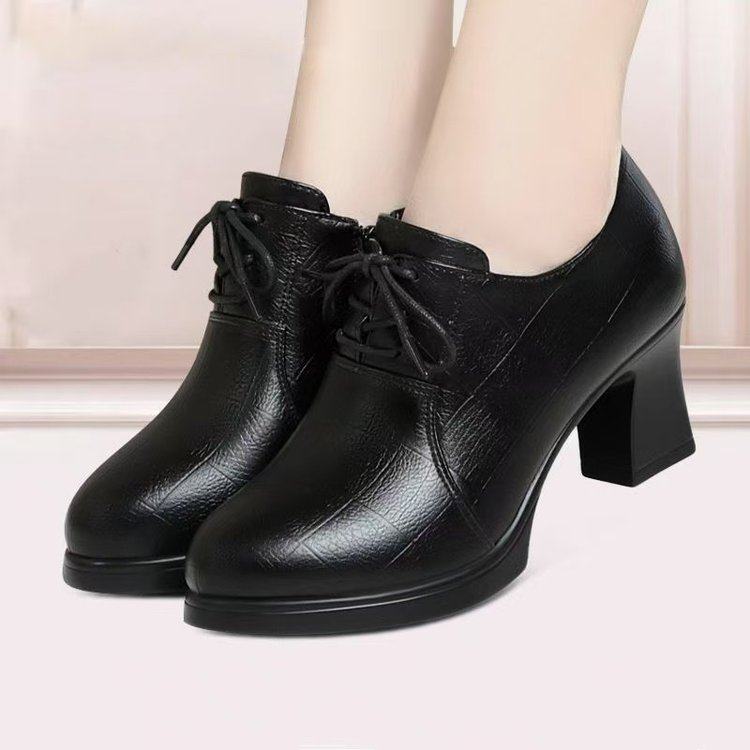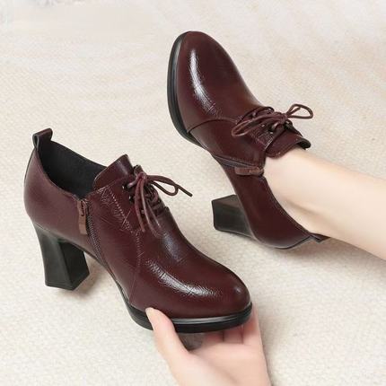 2025新款春秋季尖头深口单鞋女粗跟中跟真皮皮鞋秋冬软皮高跟女鞋