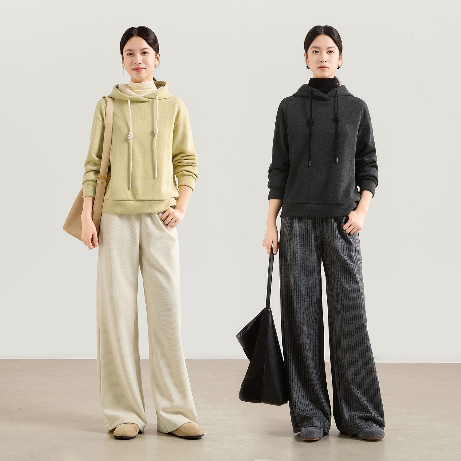 IHIMI海谧定纺复合加厚连帽卫衣女秋季加绒保暖上衣