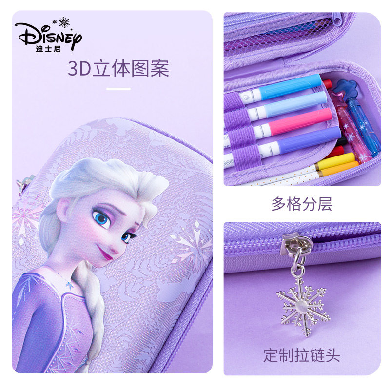 迪士尼笔袋冰雪奇缘文具盒女童铅笔盒拉链款爱莎公主幼儿园小学生专用文具袋女生儿童艾莎女孩一年级学习用品