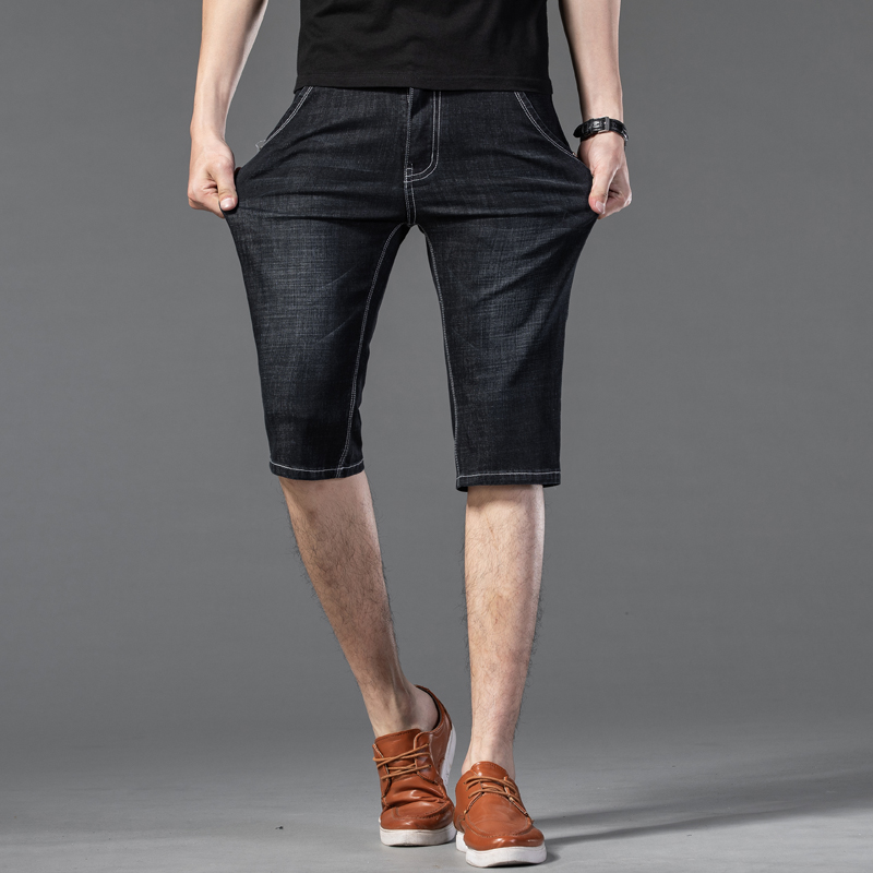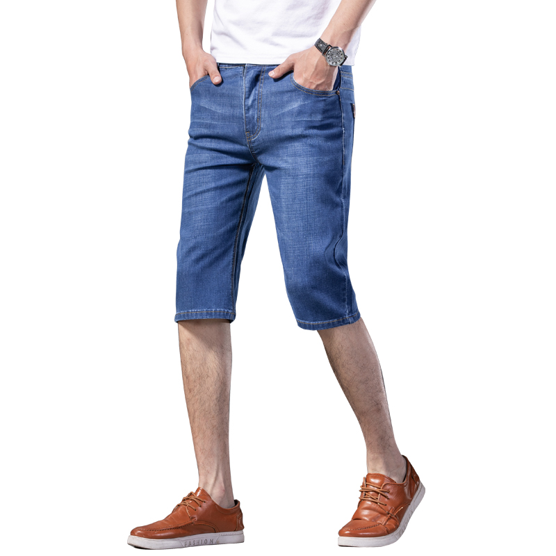 夏季薄款男士牛仔短裤男七分休闲牛仔裤子男宽松直筒弹力五分中裤