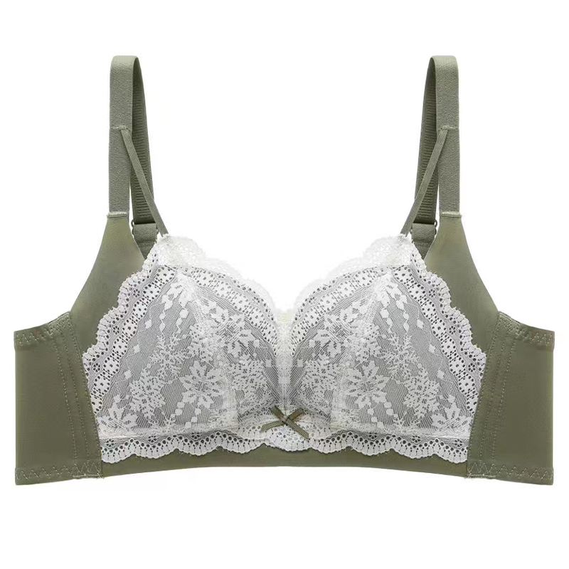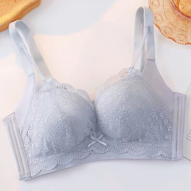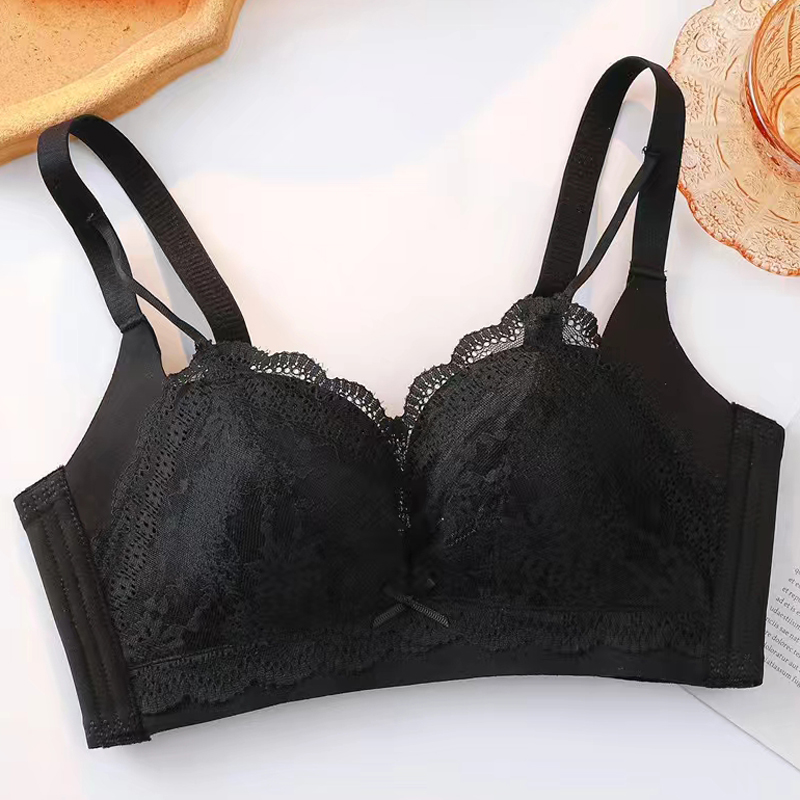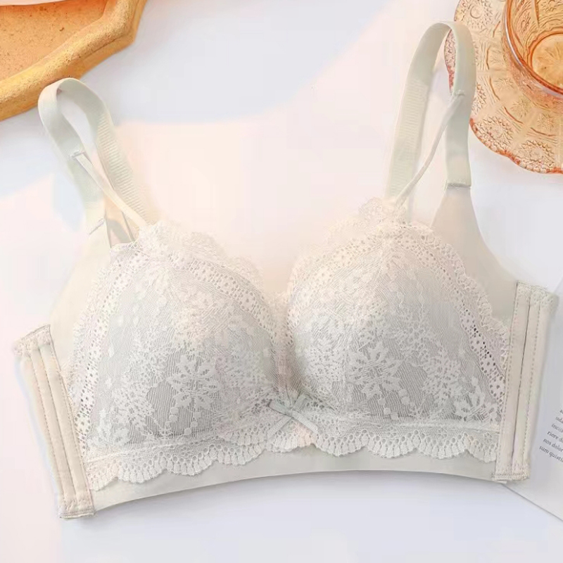 无钢圈文胸小胸加厚深V聚拢上托美背胸罩少女性感蕾丝内衣三排扣