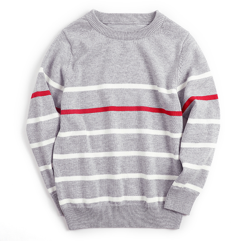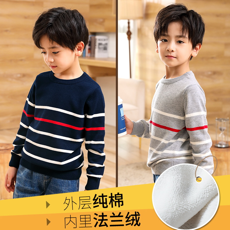 秋冬新款加绒加厚条纹男孩毛衣