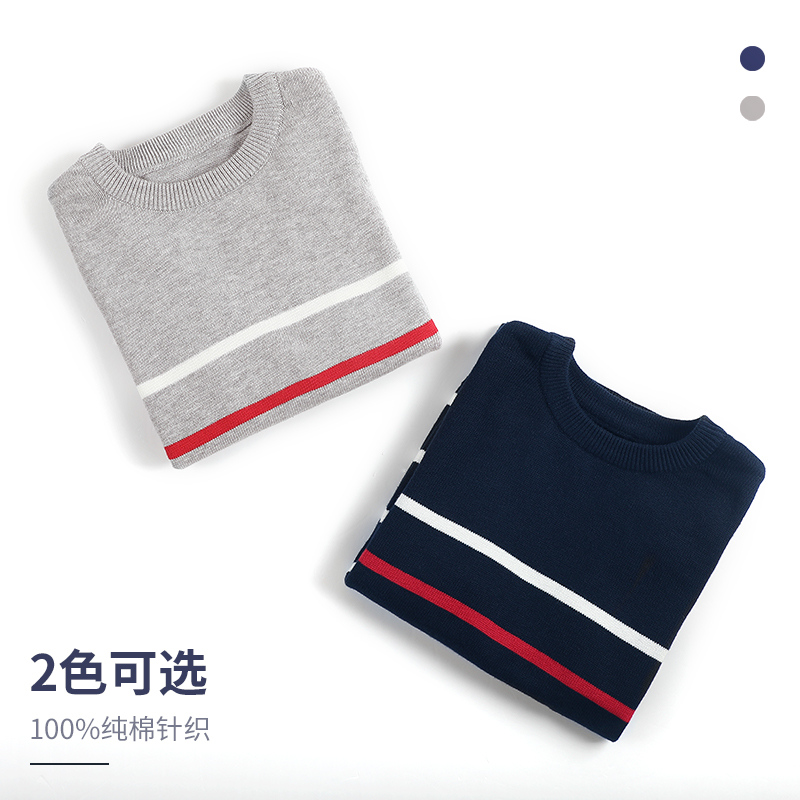 2024男童毛衣套头秋冬新款儿童加绒加厚针织衫纯棉条纹男孩童装潮