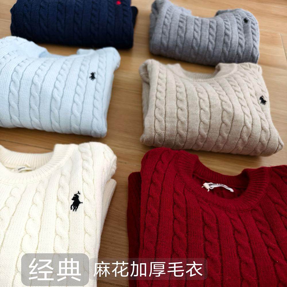 2025冬新款儿童套头线衣刺绣保暖毛衣男女童中大童加厚麻花针织衫