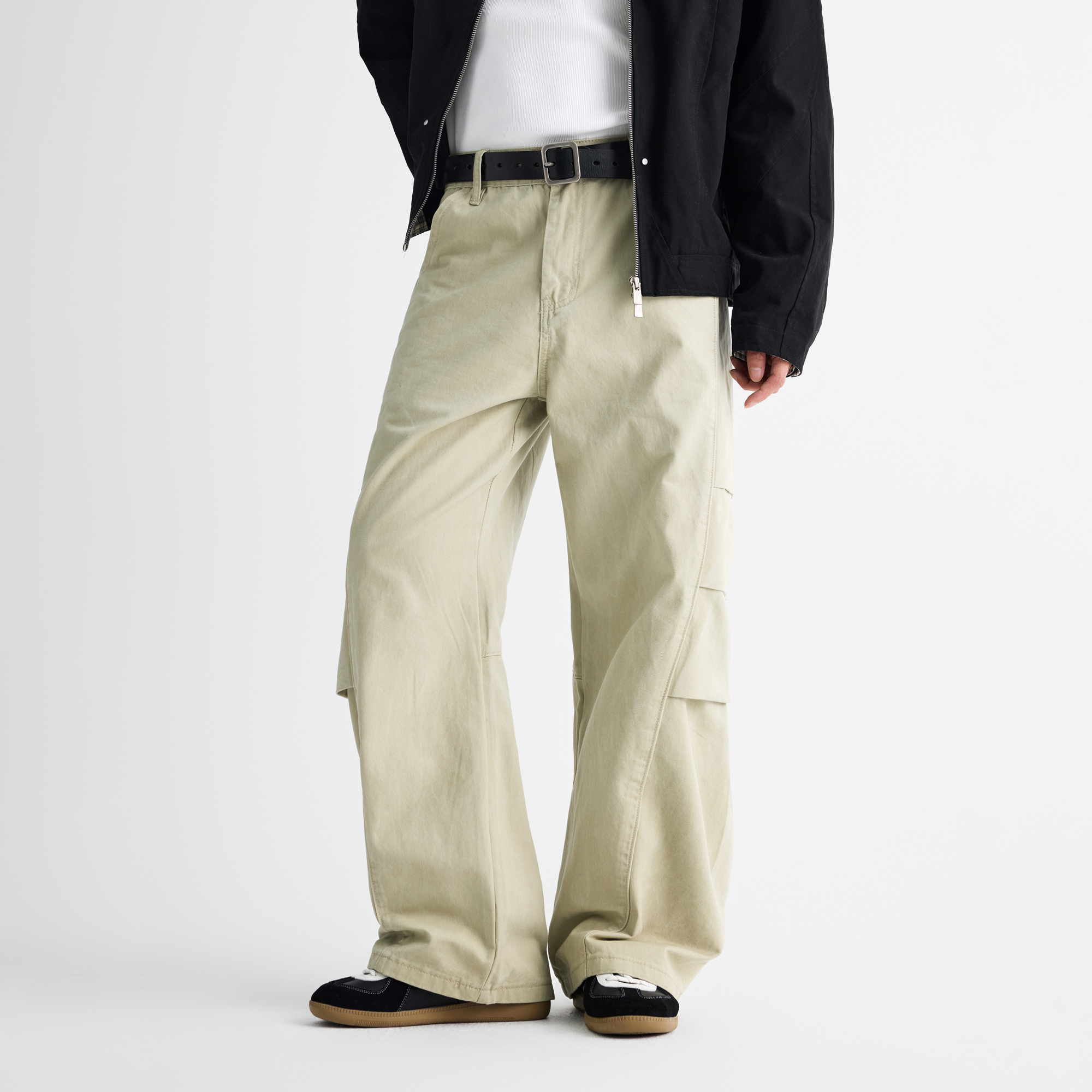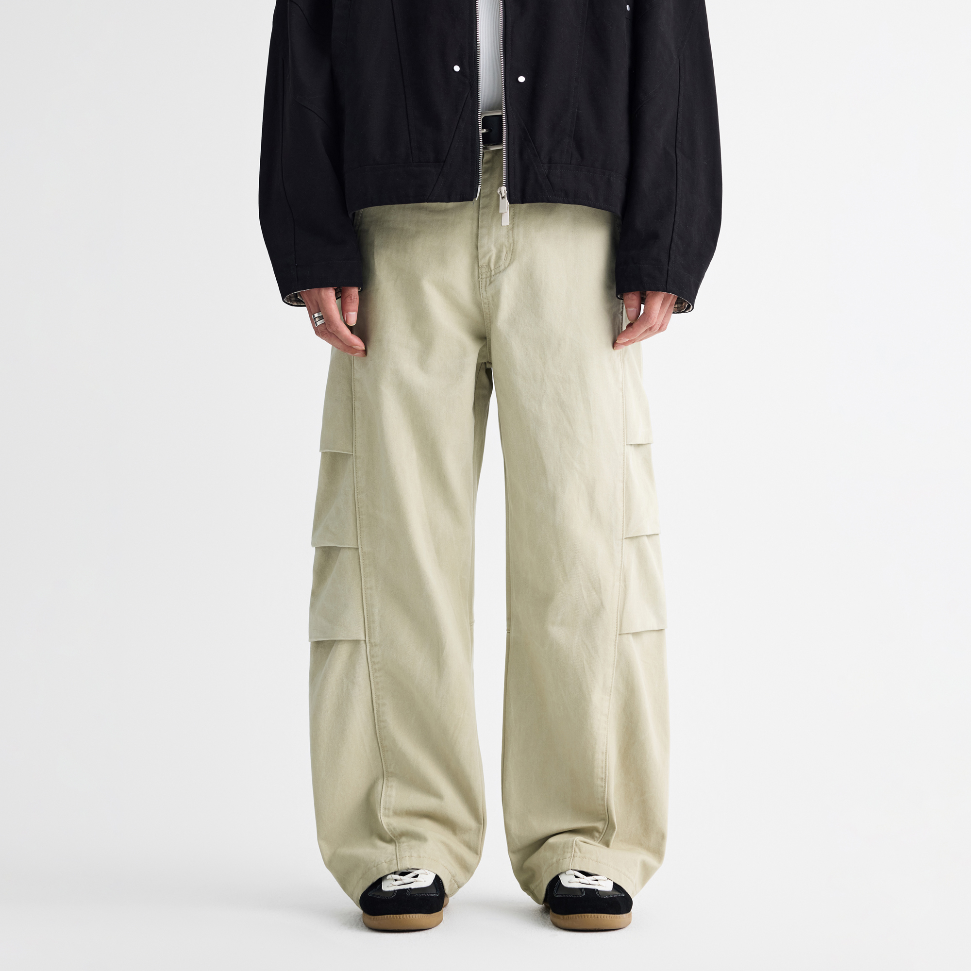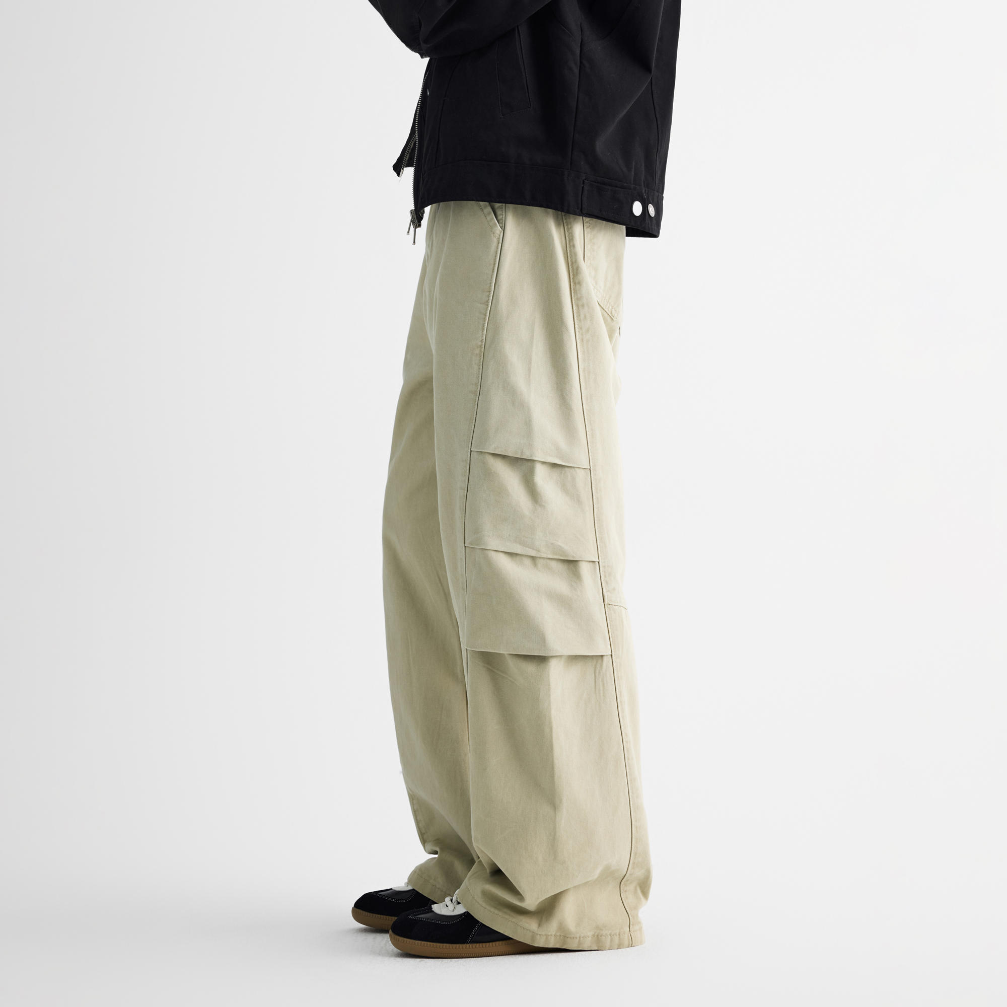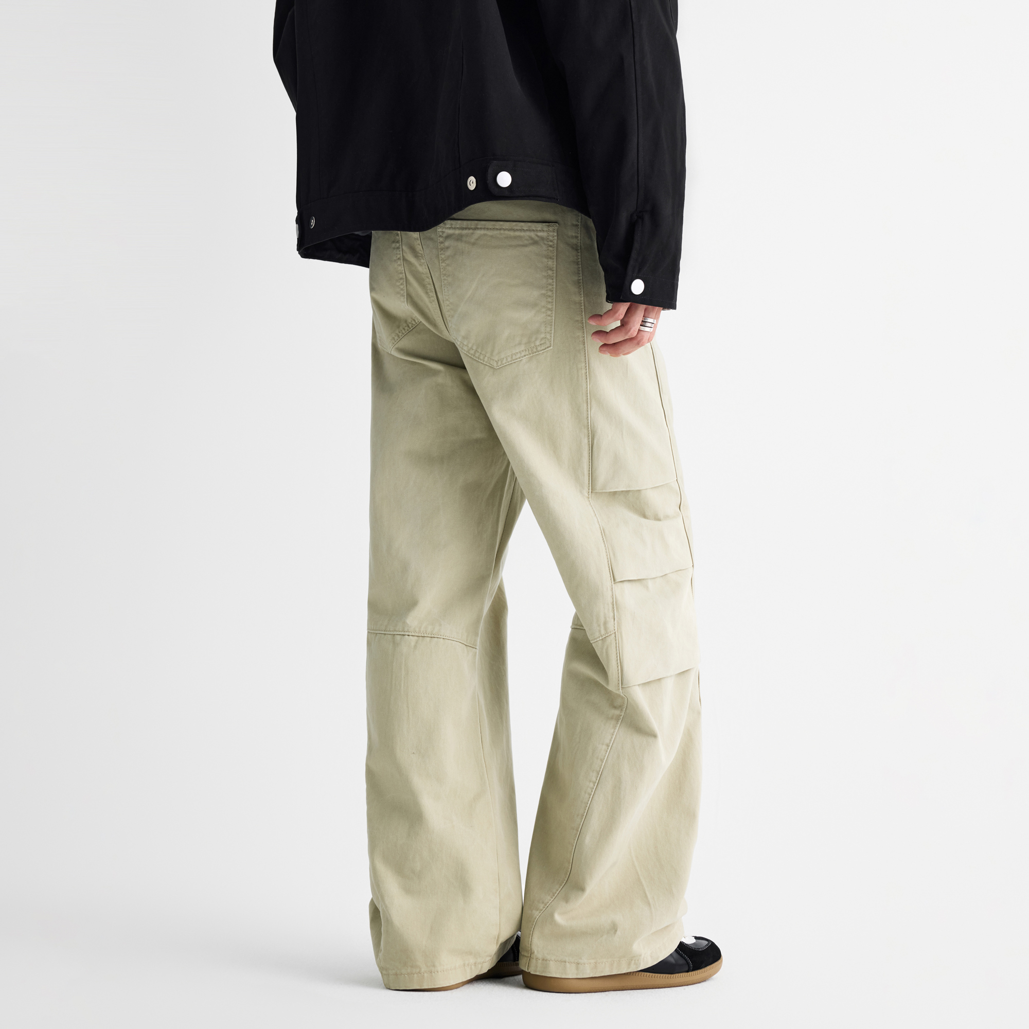 Outoo 卡其色直筒工装裤男秋冬美式设计感宽松休闲长裤阔腿牛仔裤