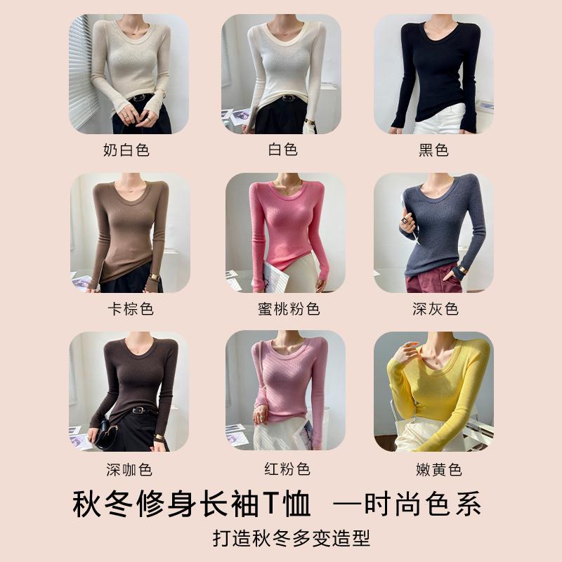 燕麦色U领羊毛打底衫女冬修身毛衣内搭秋冬可外穿高端精致针织衫
