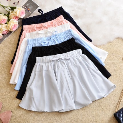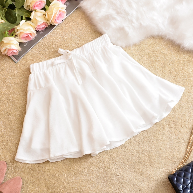 韩版春夏雪纺半身裙裤 松紧腰学生蓬蓬裙短裙防走光高腰A字女夏季