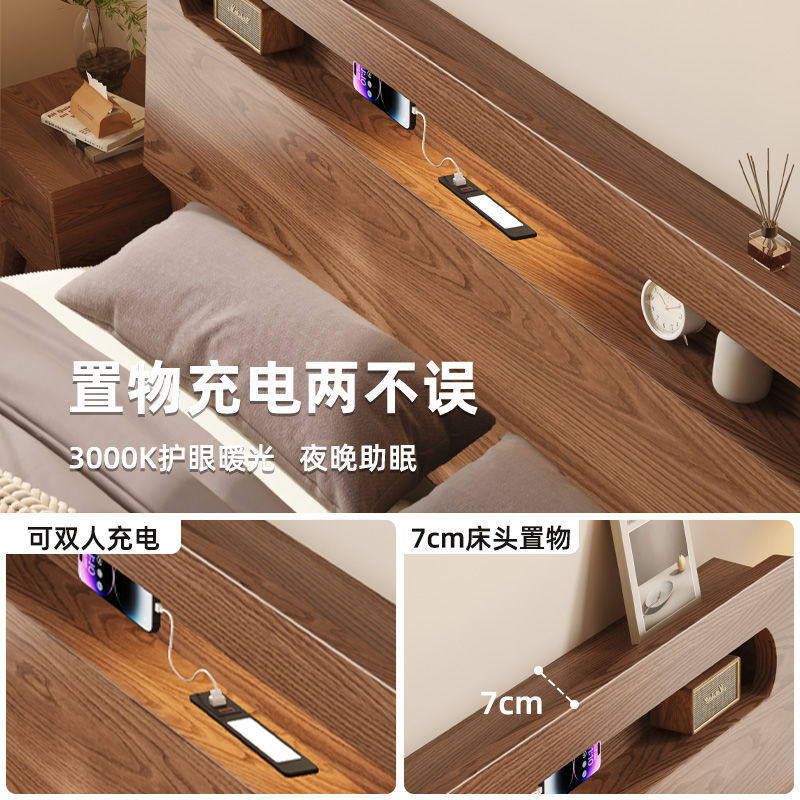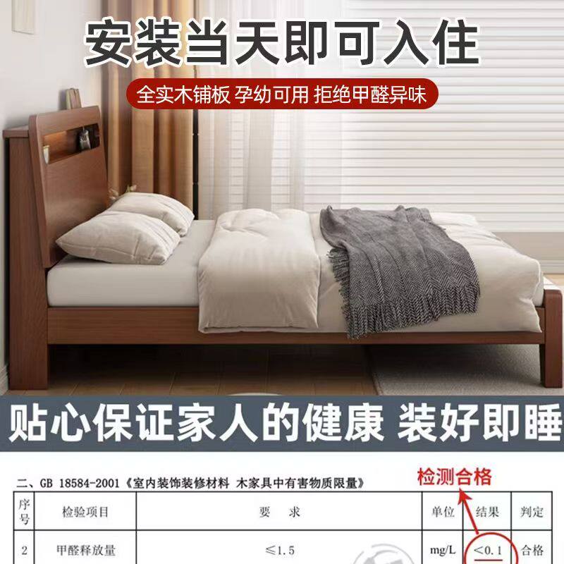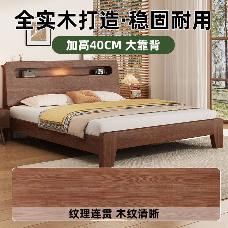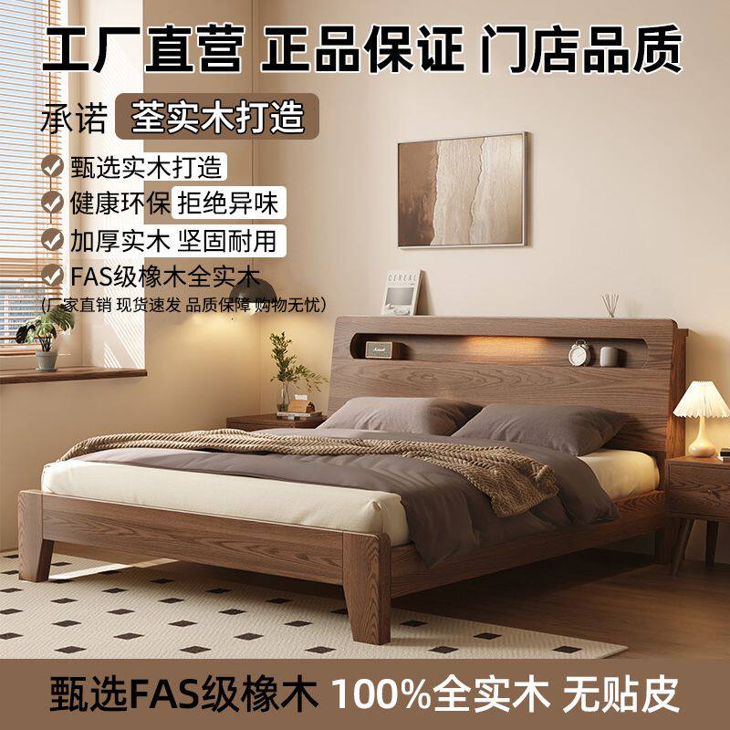 床实木床简约现代1.8米双人床卧室1.5米橡木储物出租房用单人床架