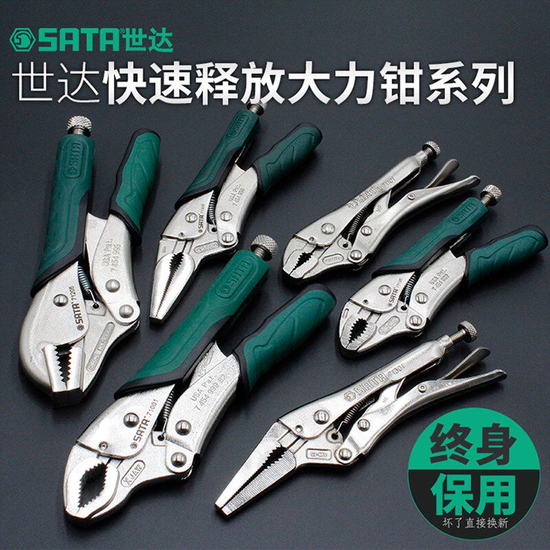 世达工具圆口带刃直口曲口5 /7/10寸尖嘴快速释放钳焊接C型大力钳