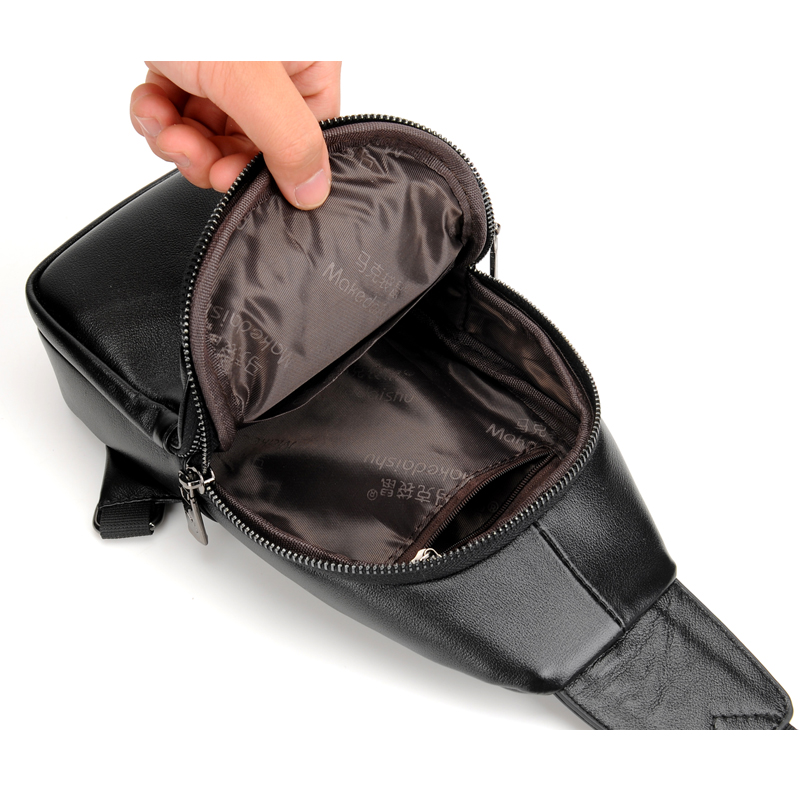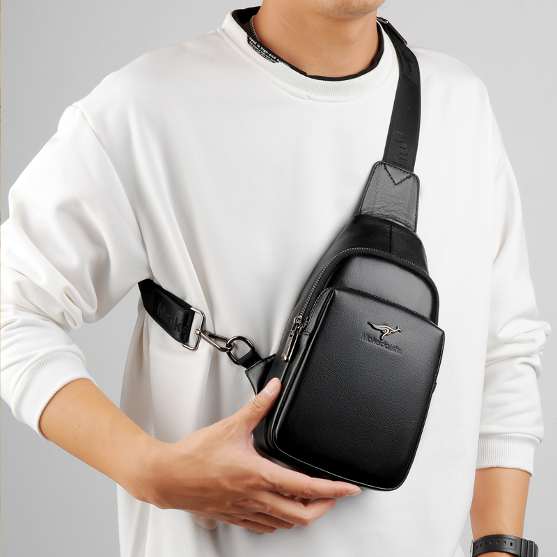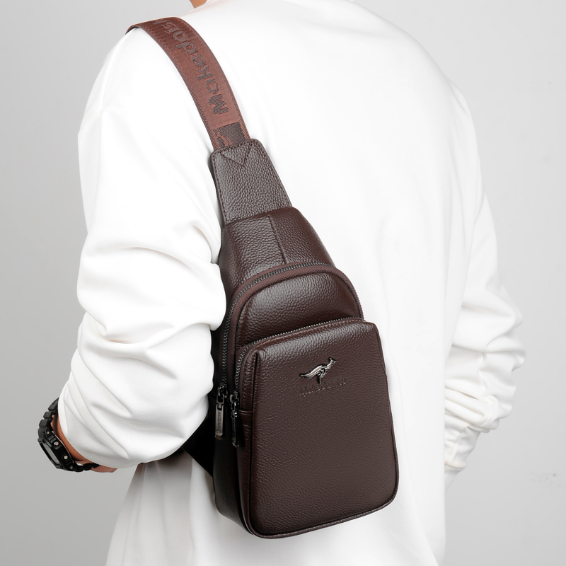 头层牛皮男士胸包休闲单肩斜挎包韩版小背包斜跨包真皮男包胸前包
