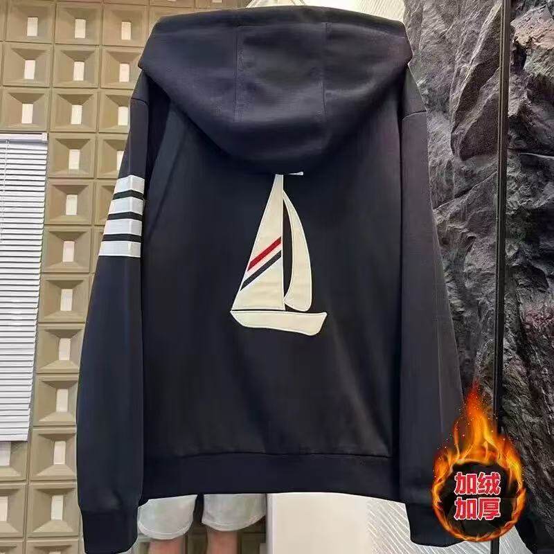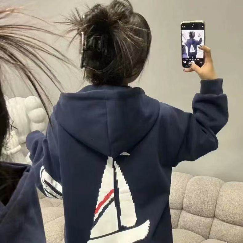 2025秋季帆船印花连帽外套卫衣开衫女男网红三道杠情侣夹克潮牌