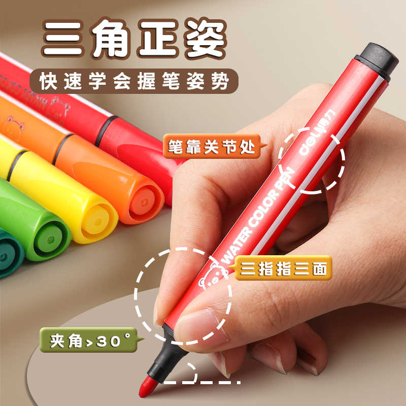 得力水彩笔24色幼儿园儿童可水洗画笔可洗彩色笔小学生专用宝宝红色水彩笔套装12色36色48色彩笔儿童