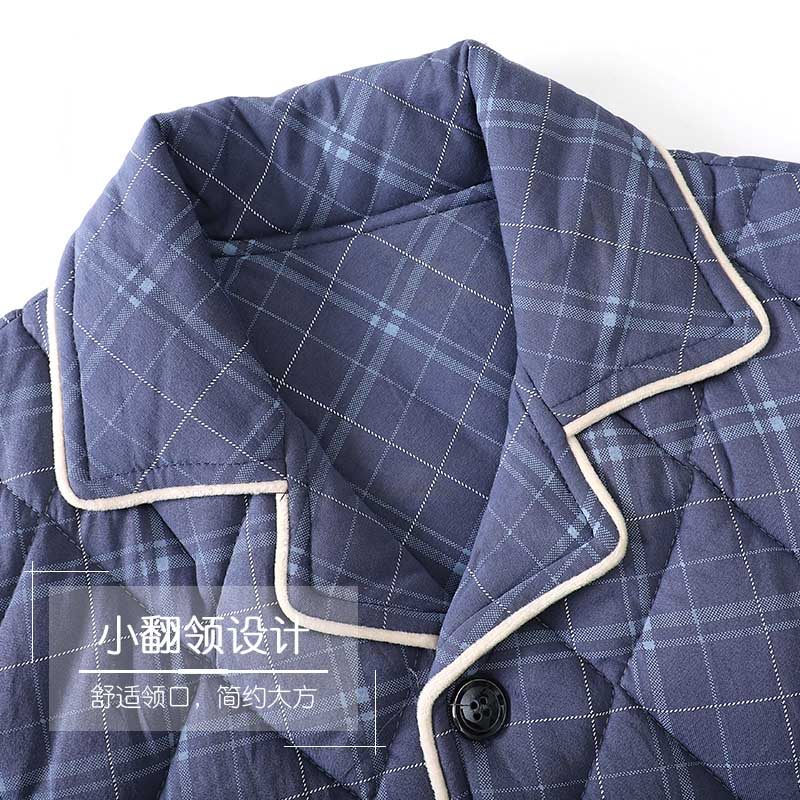 猫人睡衣男士秋冬款三层加厚纯棉夹棉家居服全棉保暖冬季套装