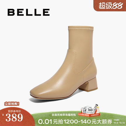 百丽女鞋子粗高跟时装靴新款冬季弹力瘦瘦靴短靴3LI60DZ4