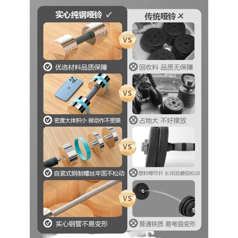 TLa电镀精钢实心哑铃纯钢杠铃组合重量可调节便携家用健身微瑕男
