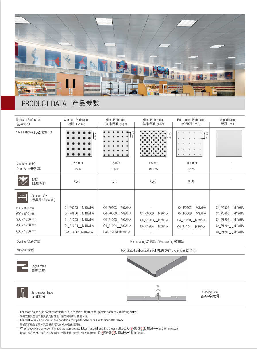 阿姆斯壮铝扣板穿吸音天花暗架金属板集成吊顶商场办公室专用铝板