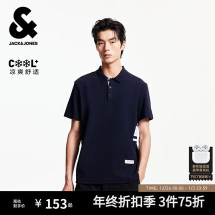 杰克琼斯polo衫男装式新款士秋季新款条纹拼色短袖翻领T恤高级潮