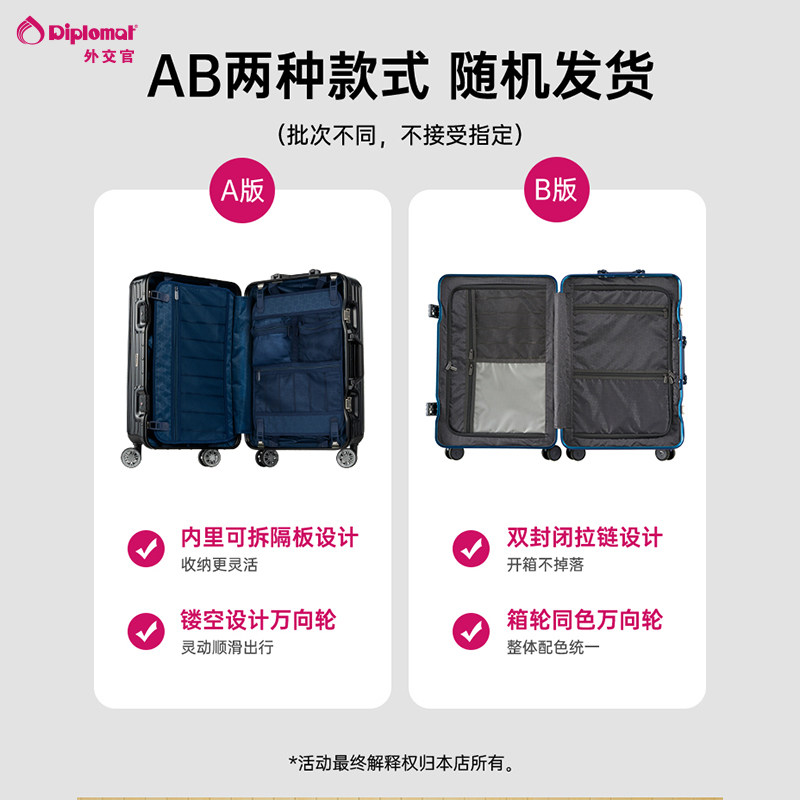 diplomat外交官行李箱铝框款拉杆箱流光箱女小20寸男旅行箱