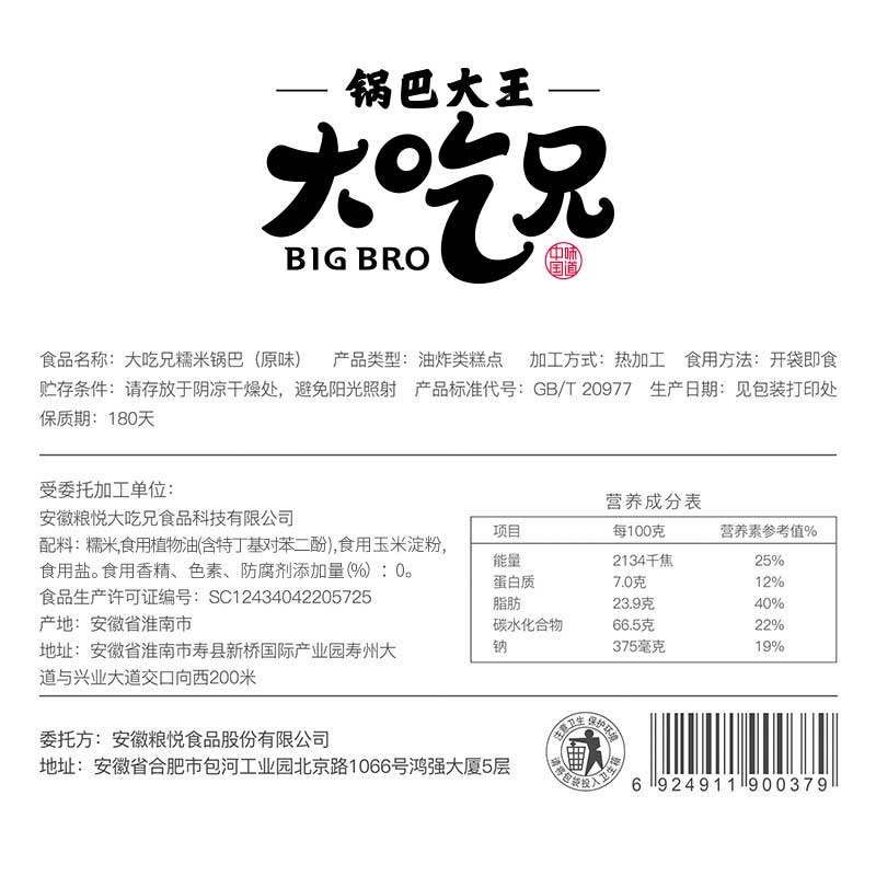 大吃兄糯米锅巴安徽特产网红爆款零食办公室休闲食品解馋小零食