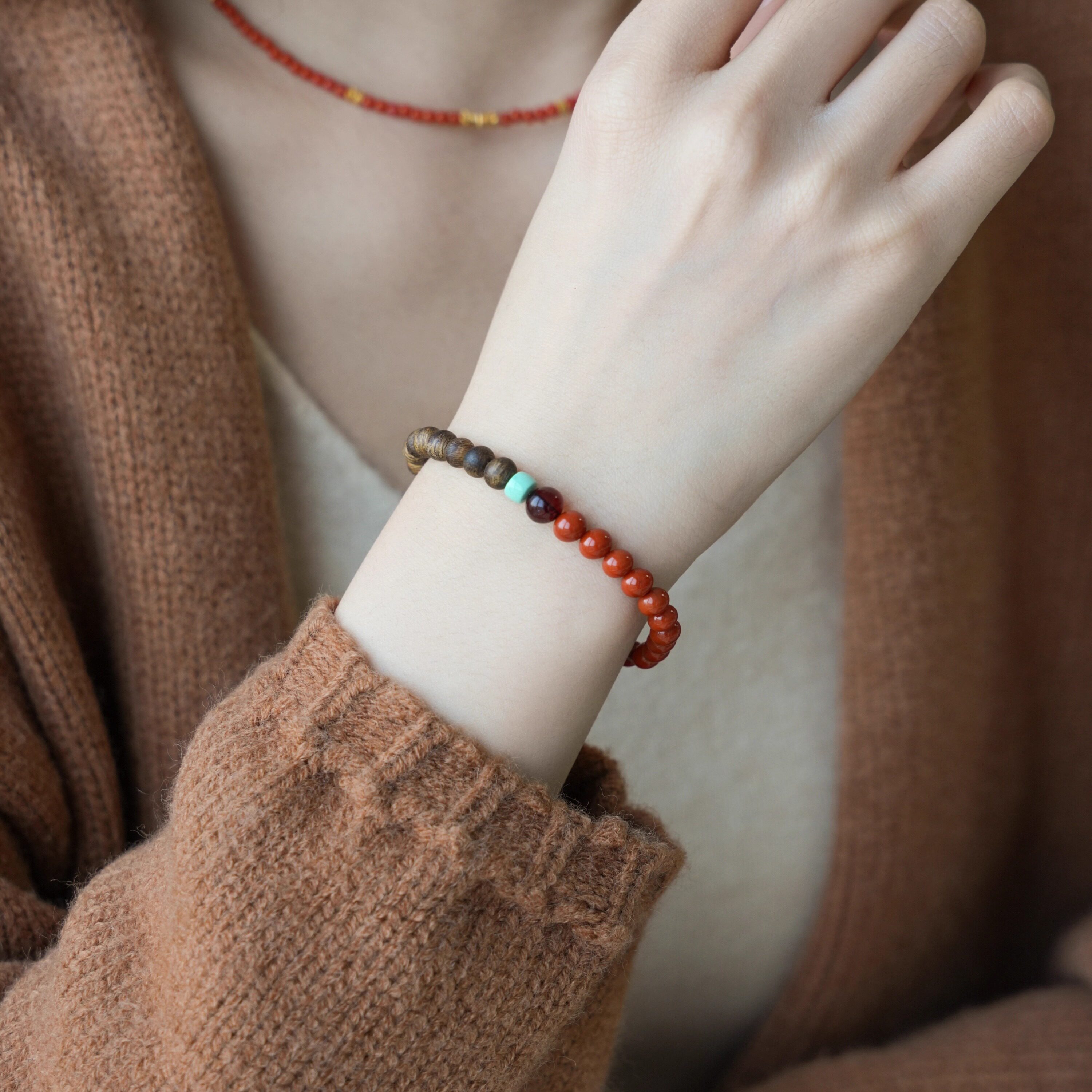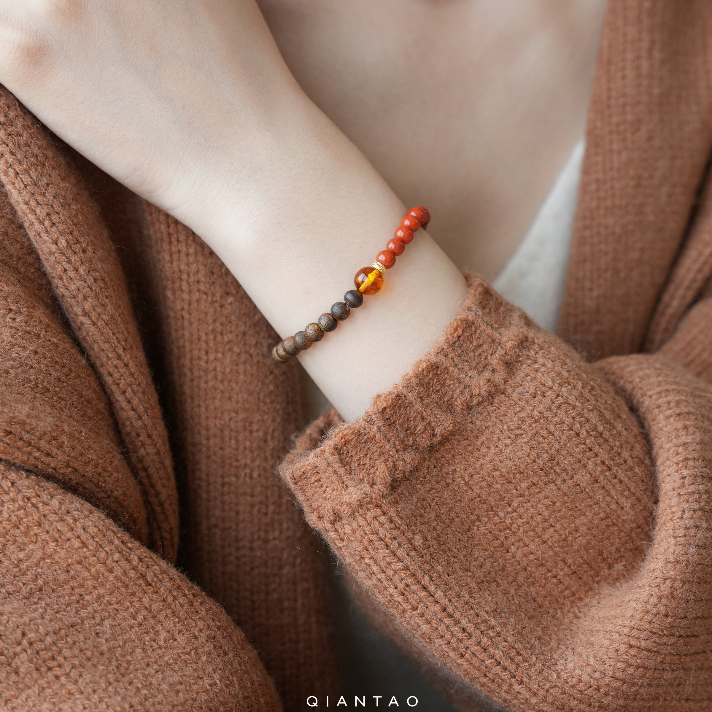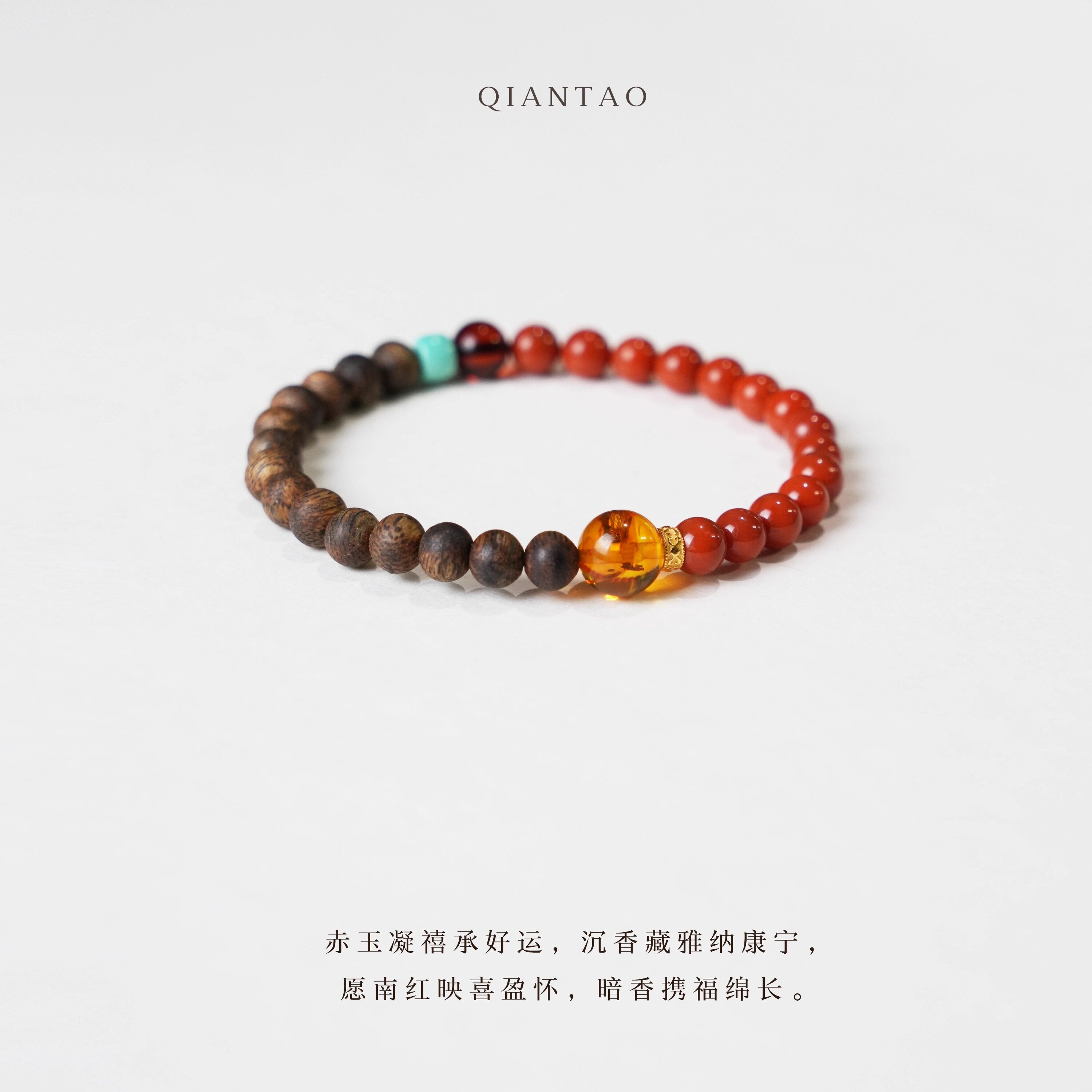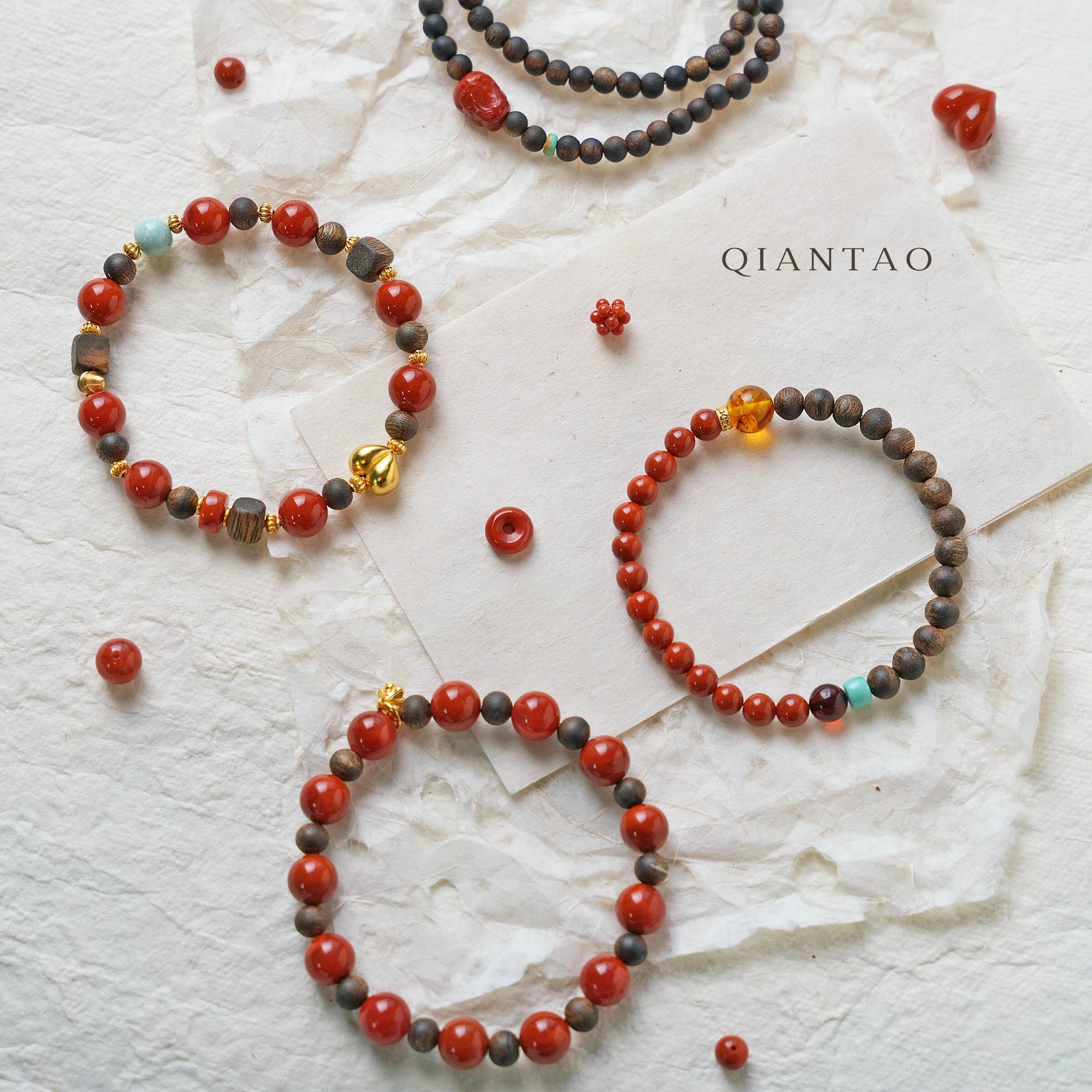 QIANTAO「词间意」原创天然南红手串沉香绿松石琥珀多宝手链礼物