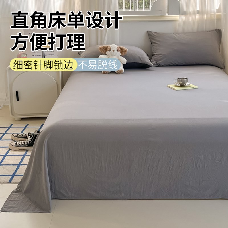 纯色简约床单单件水洗棉家用被单学生宿舍L单人床枕套三件套四季