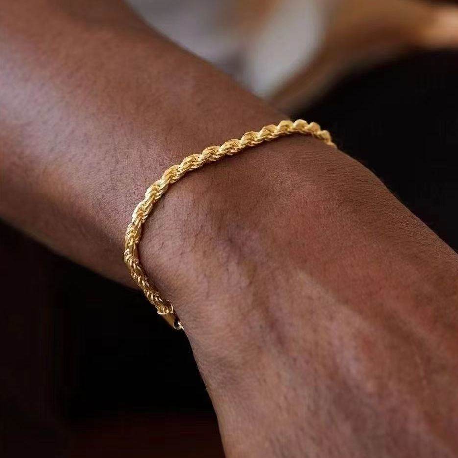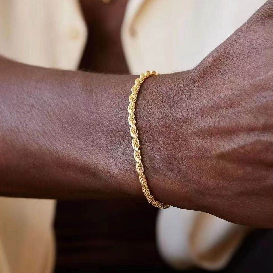 时尚金色麻花手链古巴手链男高级感个性钛钢手饰百搭潮流2025新款