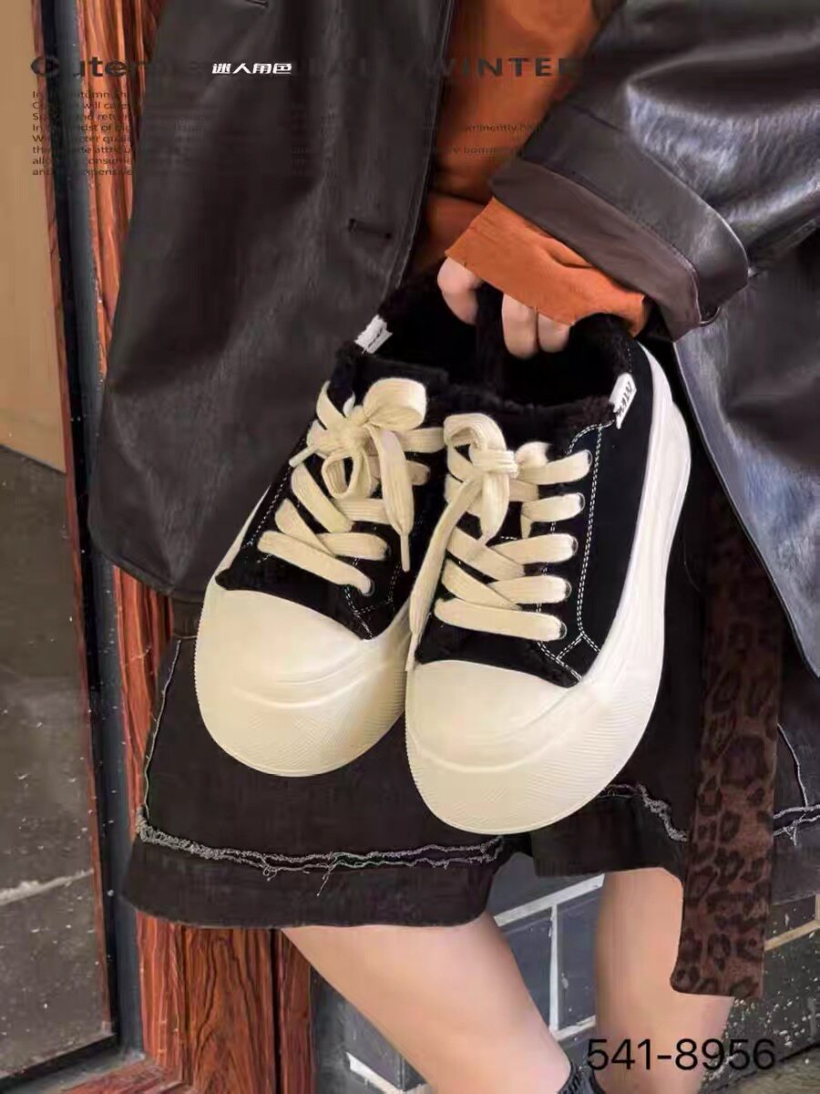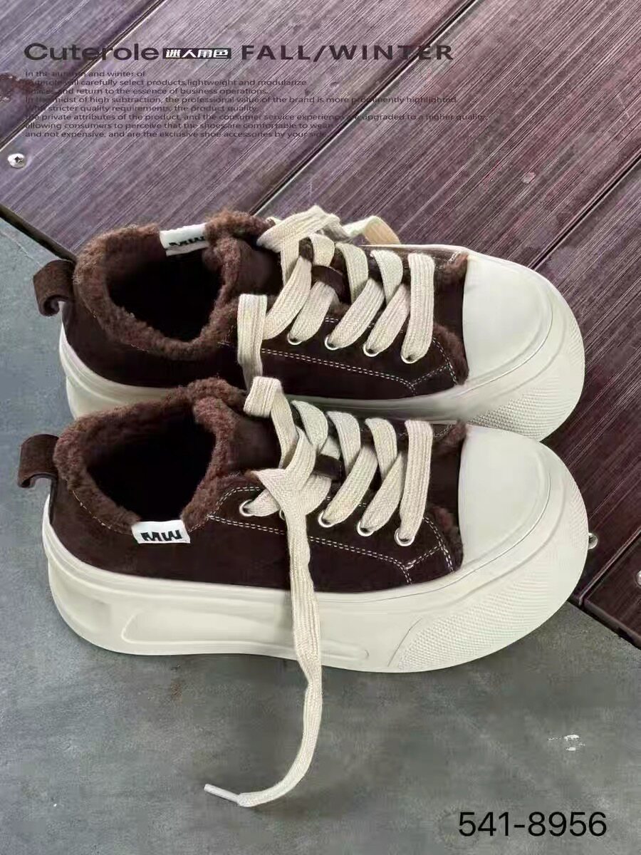 专柜正品迷人角色2025商场同款牛反皮圆头厚底休闲鞋加绒板鞋