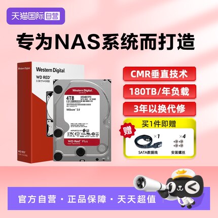 【自营】WD/西部数据3.5英寸NAS硬盘 CMR垂直 红盘plus4T网络存储