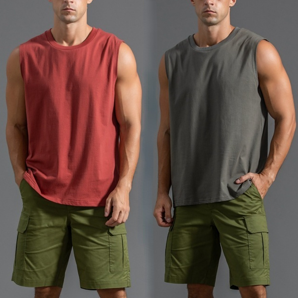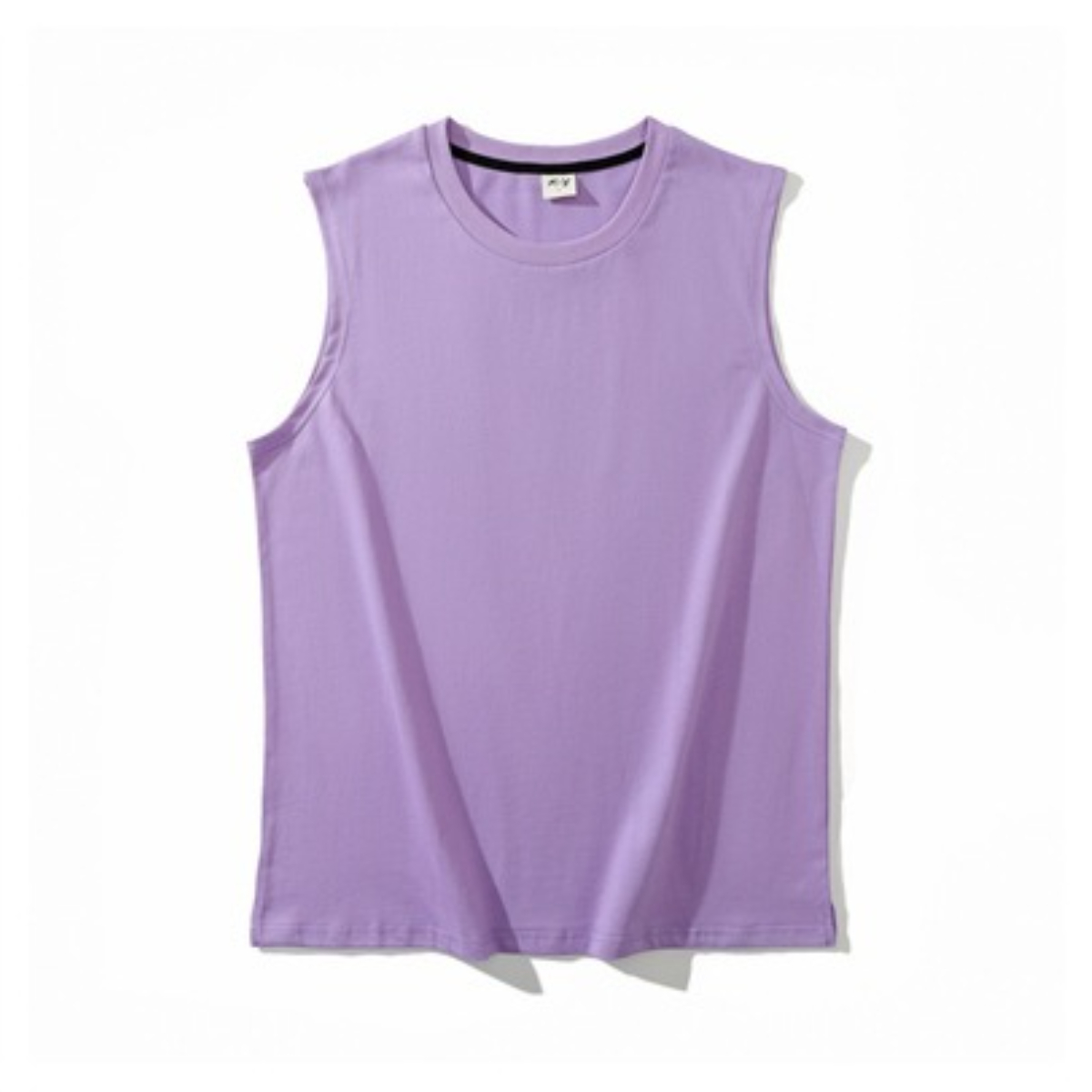 运动背心男款篮球服打底美式坎肩宽松健身上衣紫色纯棉无袖男t恤