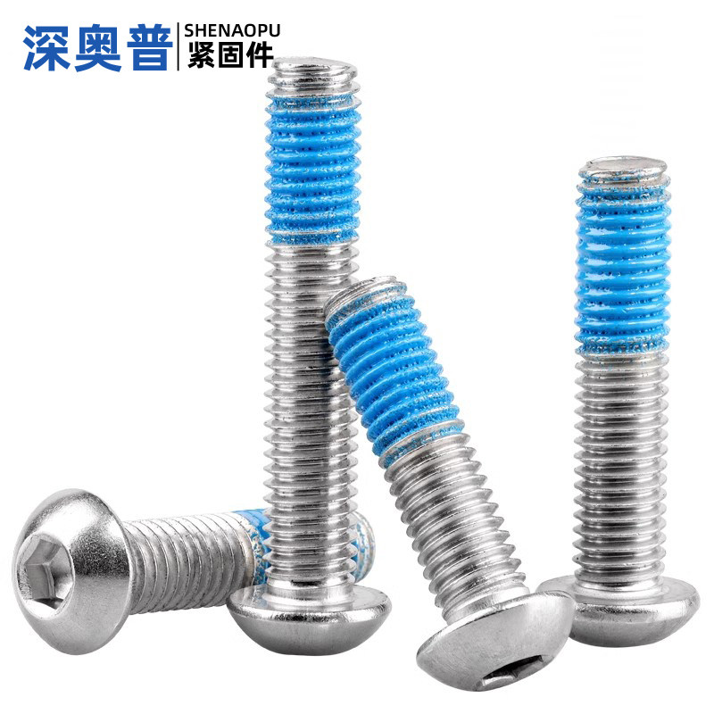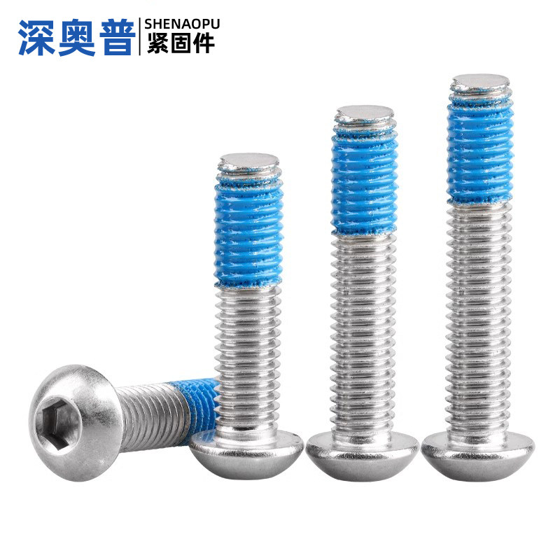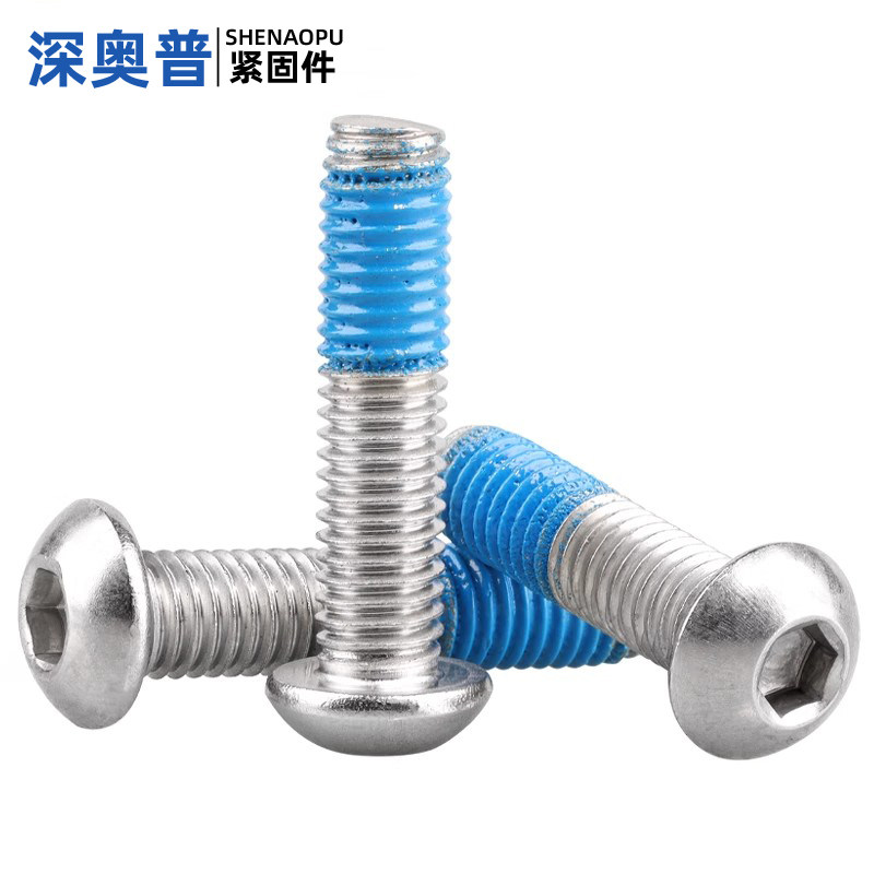 304不锈钢盘头内六角点胶螺丝防松防脱落半圆头内六角预涂螺纹胶