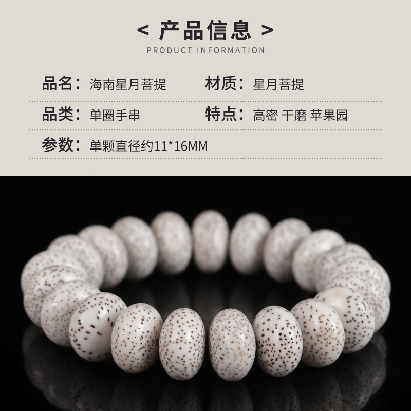 海南原籽苹果圆星月菩提子手串单圈情侣手链男女高密顺白文玩佛珠