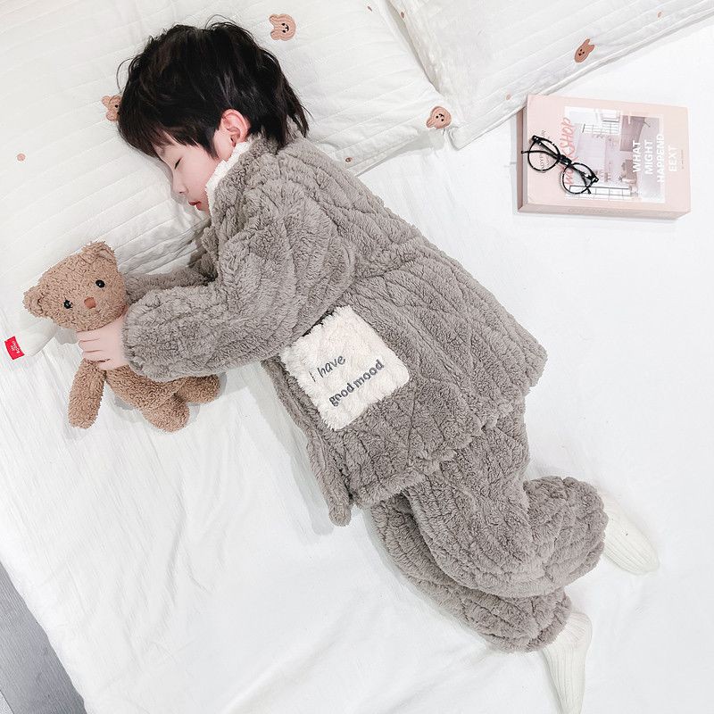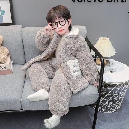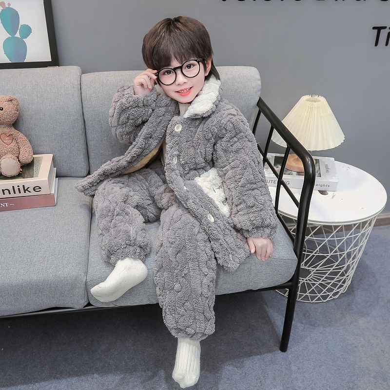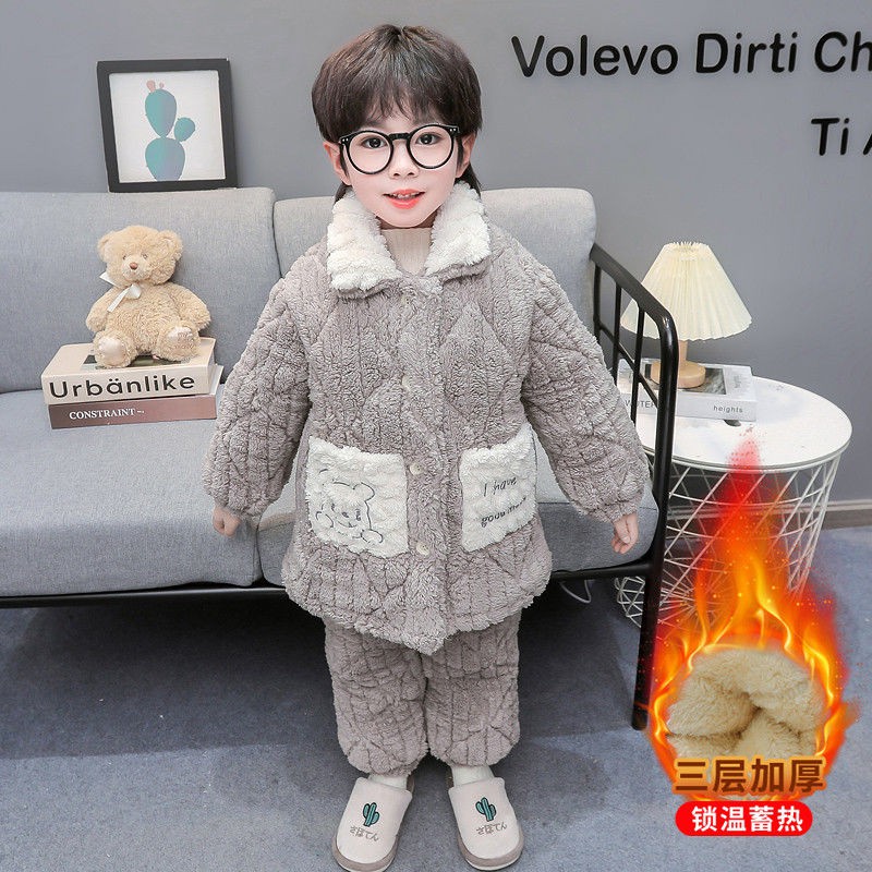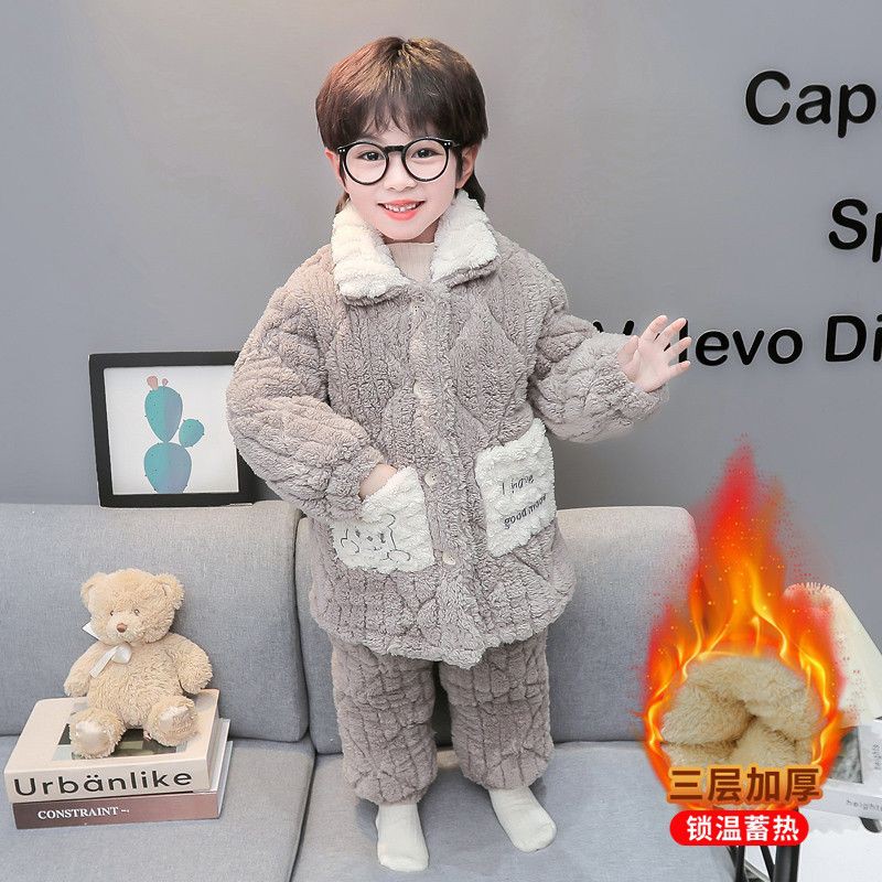 冬季儿童睡衣男童珊瑚绒夹棉三层加绒加厚款男孩中大童家居服2025
