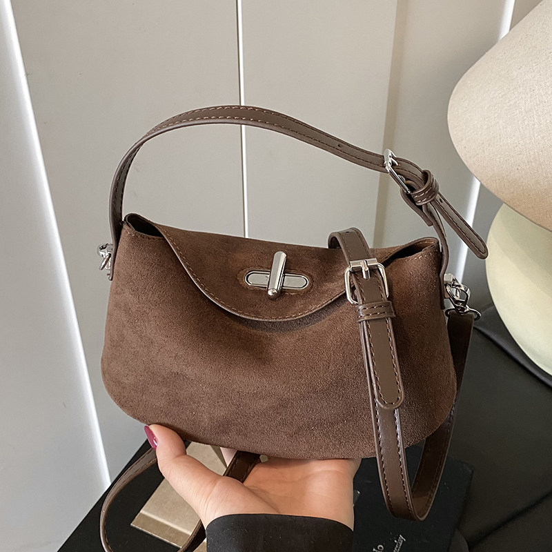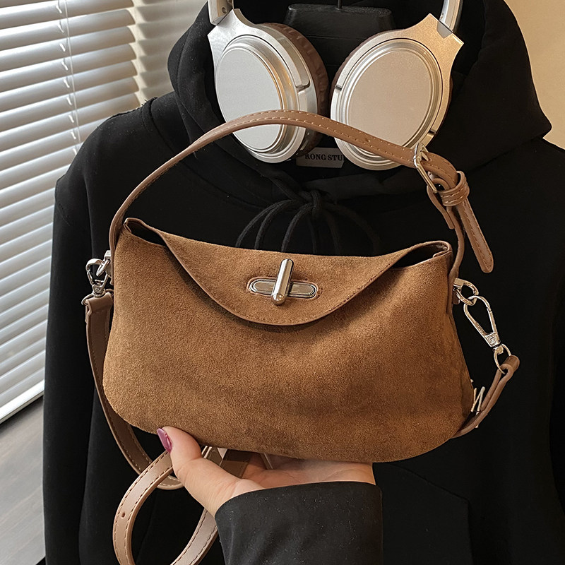 今年超火复古手拎包女2026新款秋季时尚麂皮绒百搭通勤单肩斜挎包