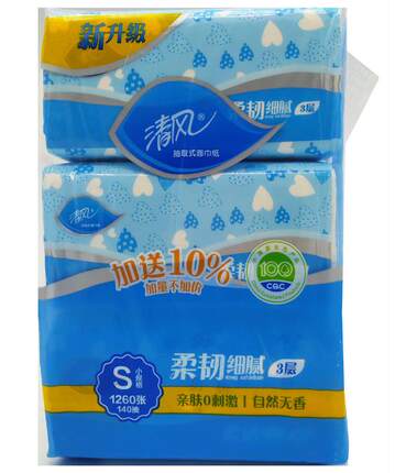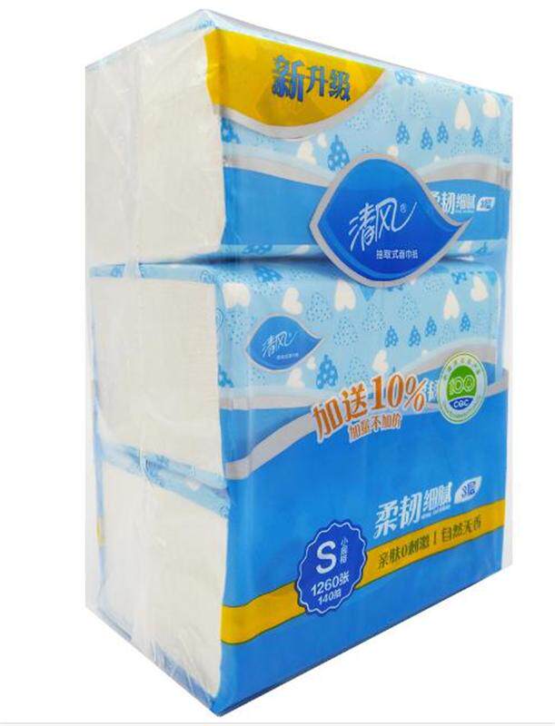 清风抽纸面巾纸三层软包抽取式纸巾140抽3层16提AR34GZT限广东省