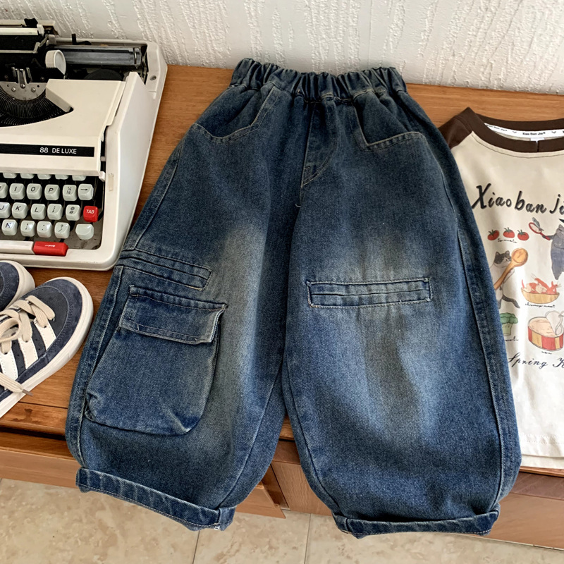 男童牛仔裤春秋款2025新款儿童秋季裤子男孩直筒长裤宝宝工装裤潮