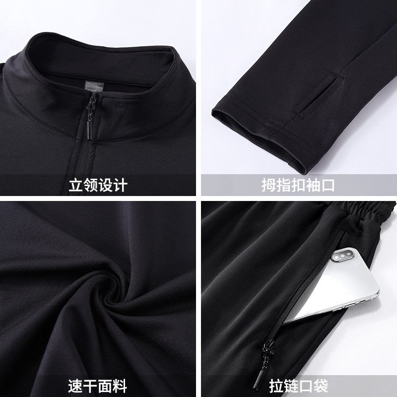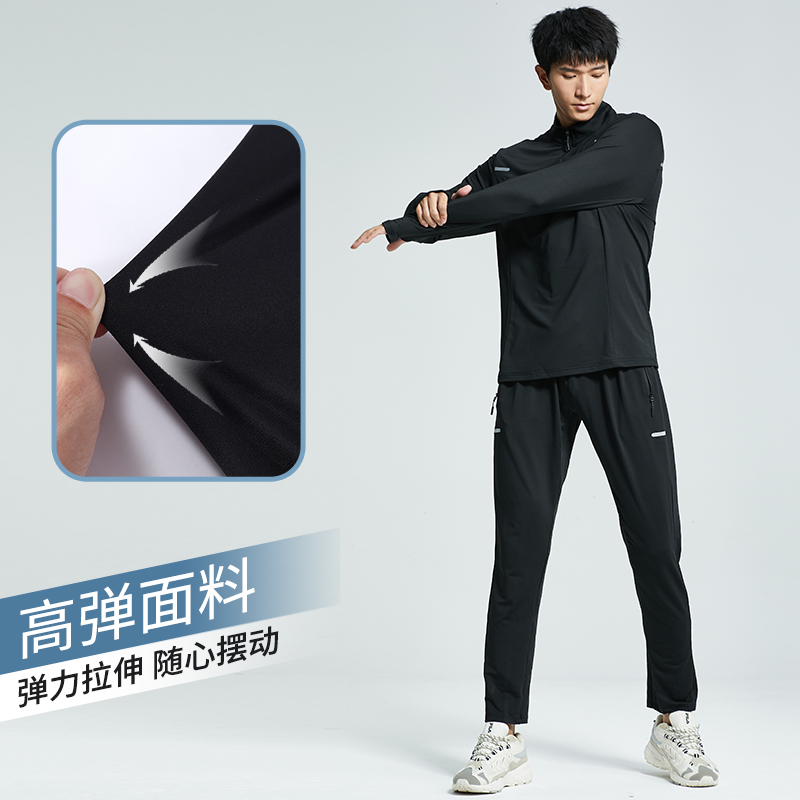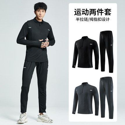 跑步运动套装男秋冬季长袖速干衣服健身房足球训练体育晨跑骑行服