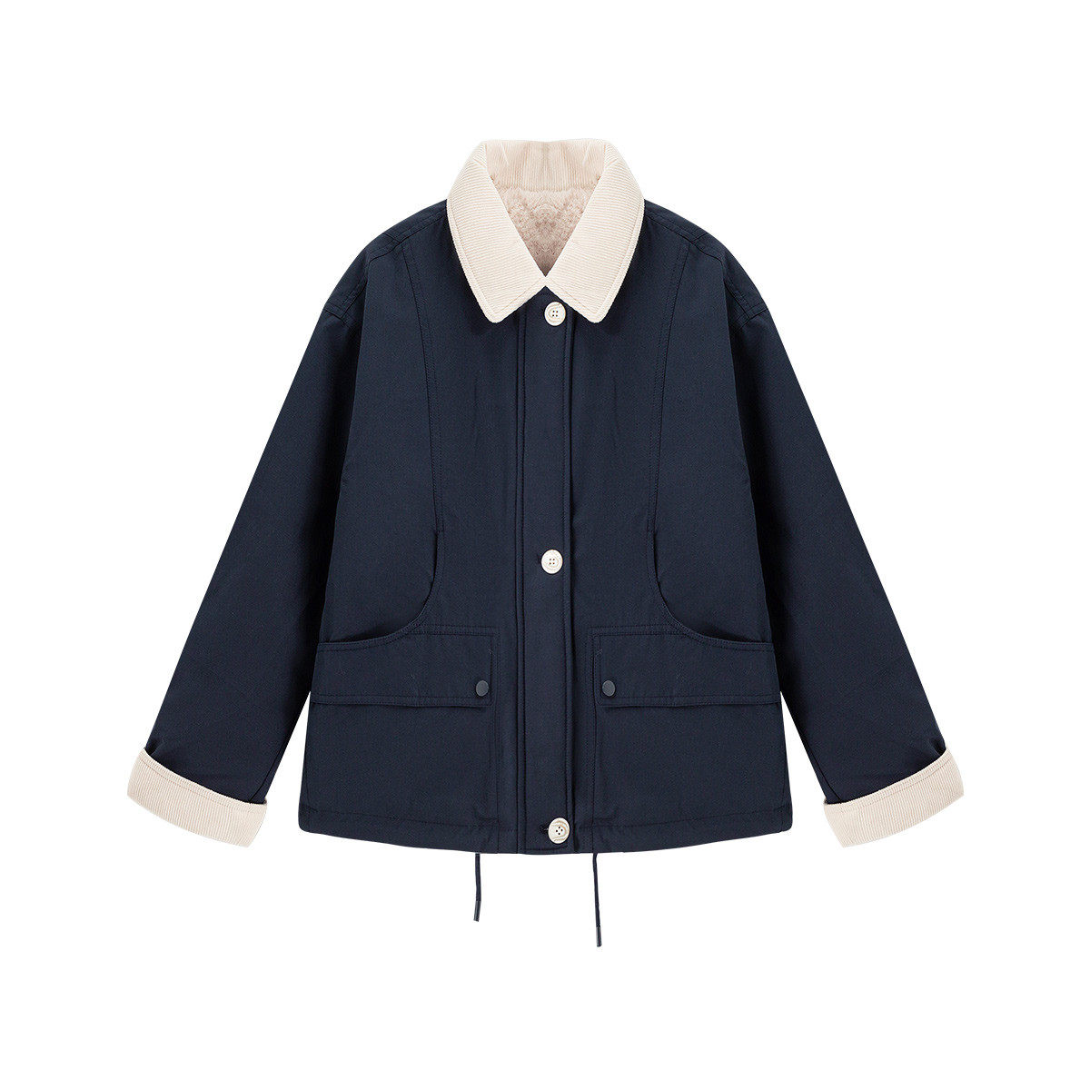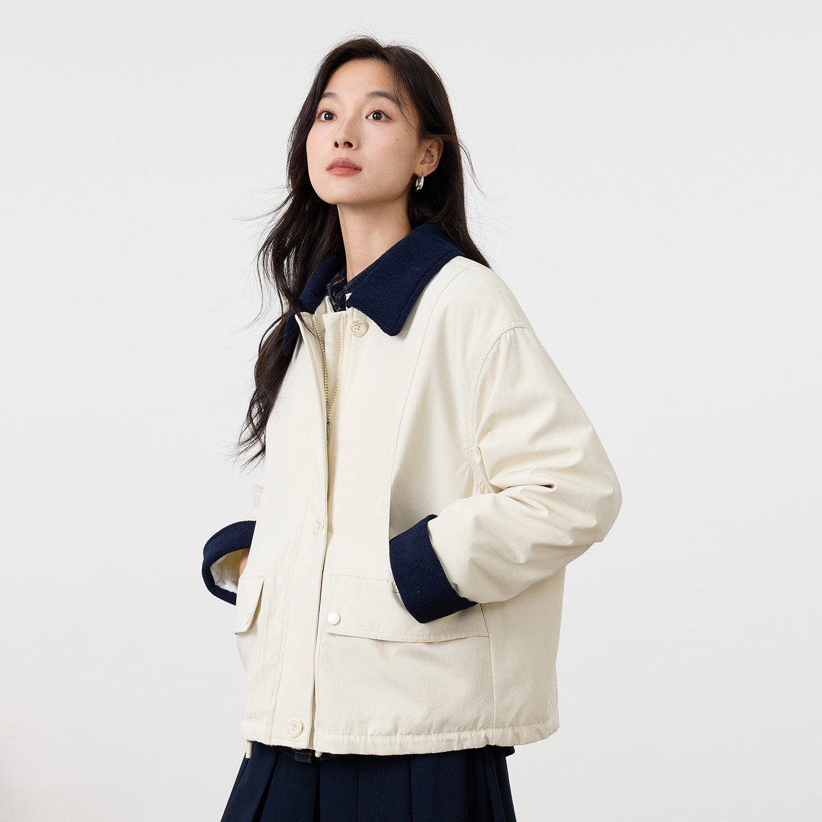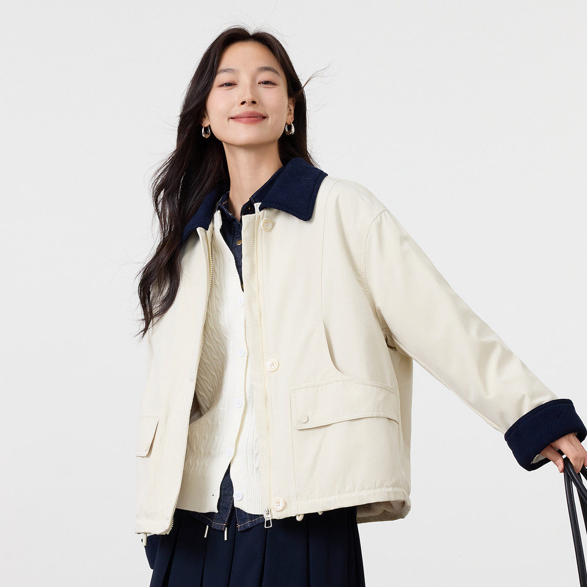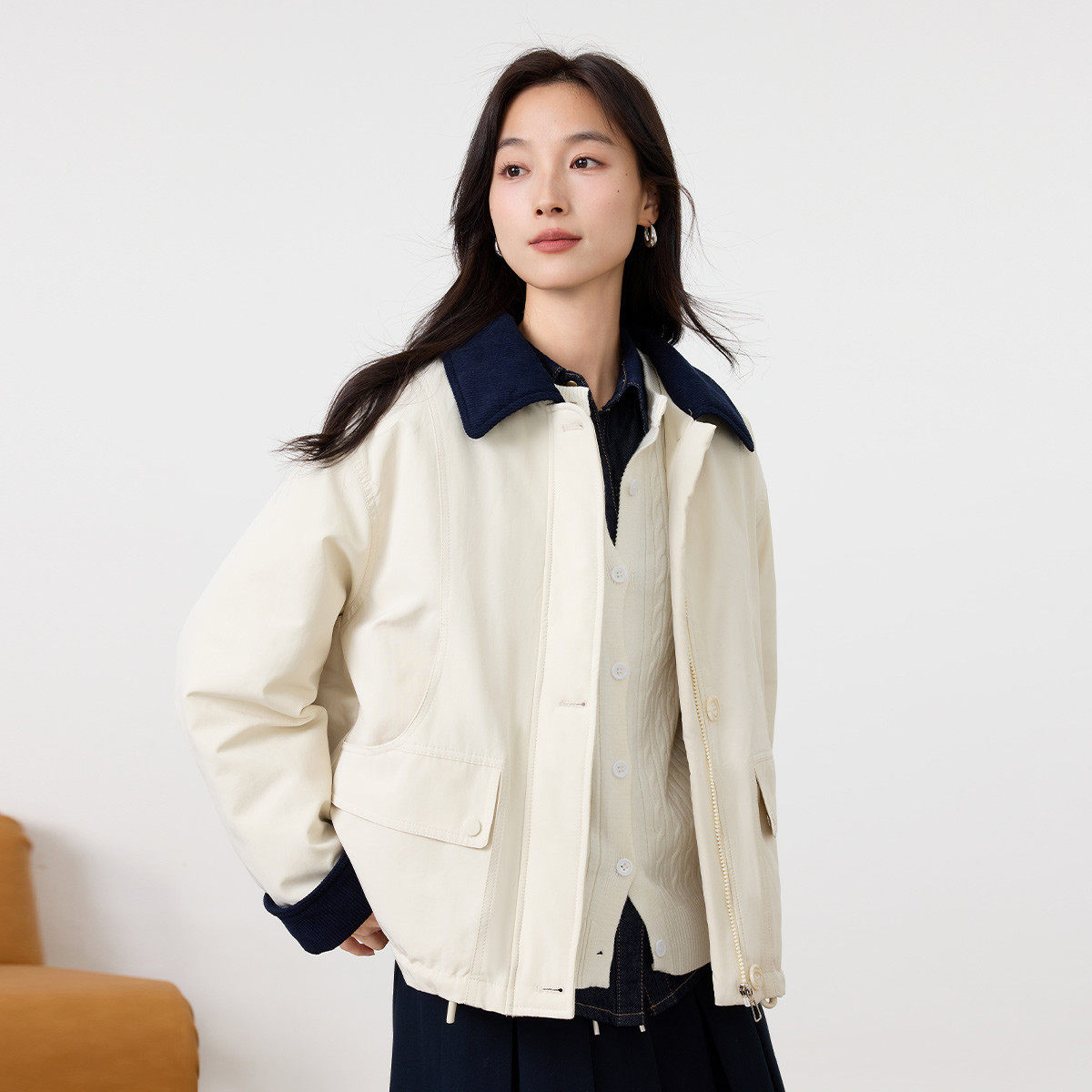 茵曼2025冬季新款复古撞色拼接夹克外套女小个子休闲时尚宽松显瘦
