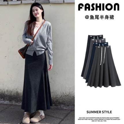 深灰色半身裙女2秋季025新款小个子高腰显瘦a字中长款包臀鱼尾裙