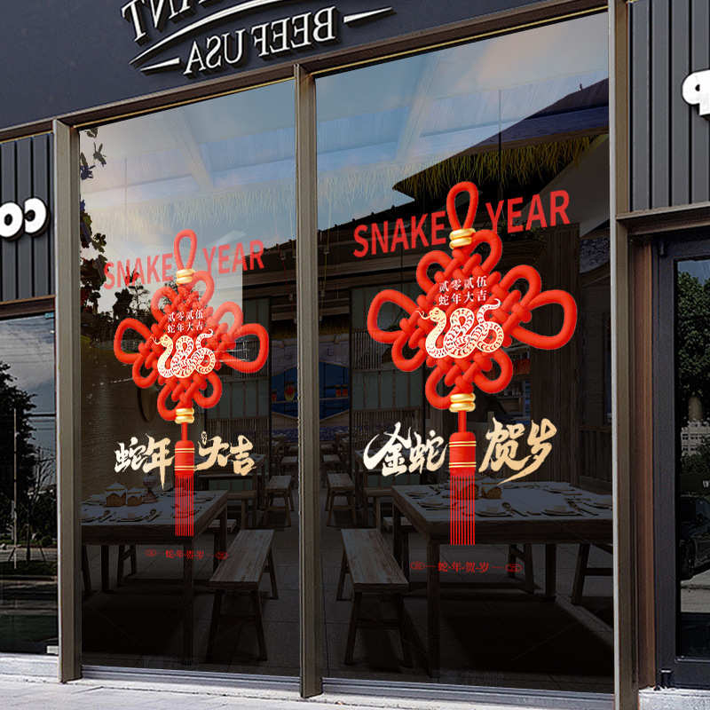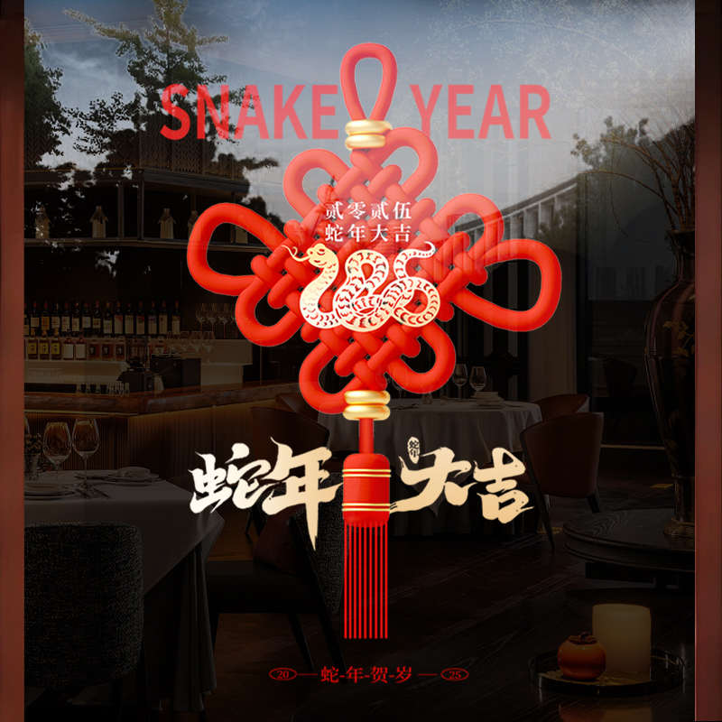 2025蛇年新年中国结装饰玻璃门贴商场元旦春节布置静电橱窗窗贴纸