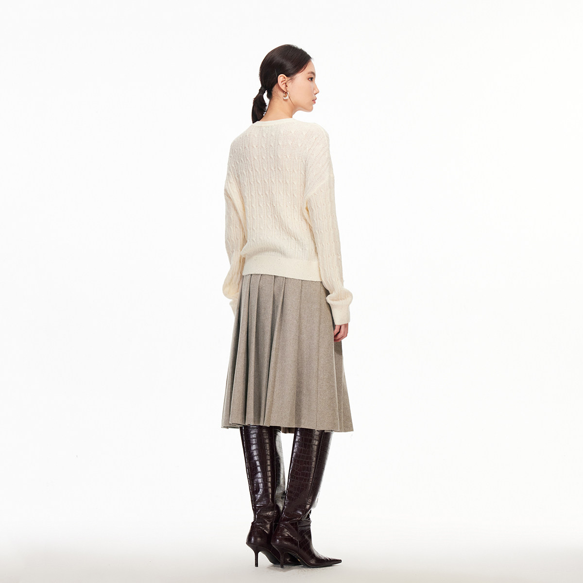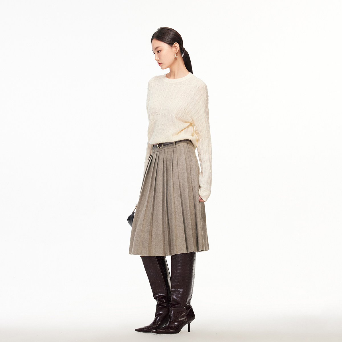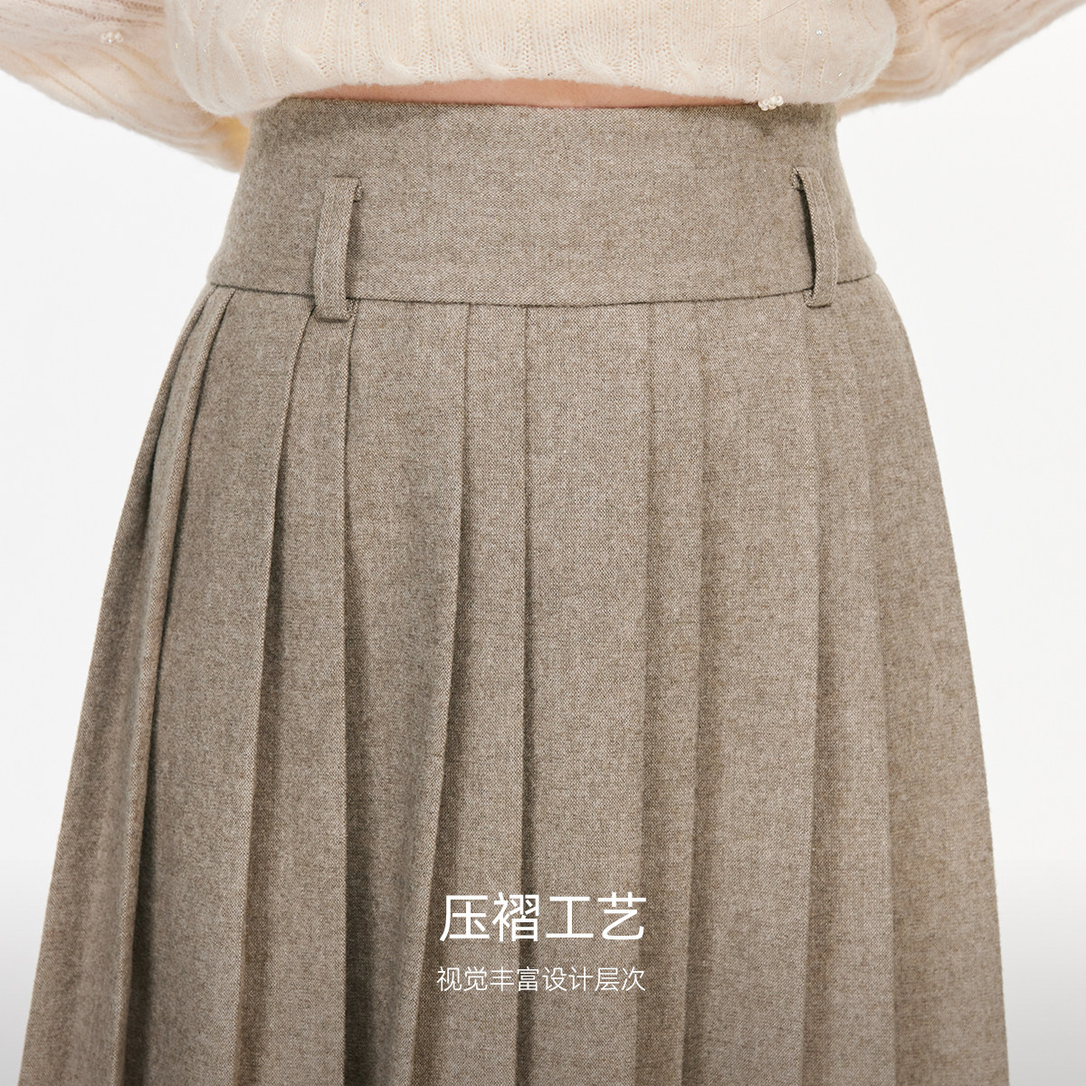 Vero Mod半身裙2026春季新款含羊毛腰带高腰通勤百褶裙325416008