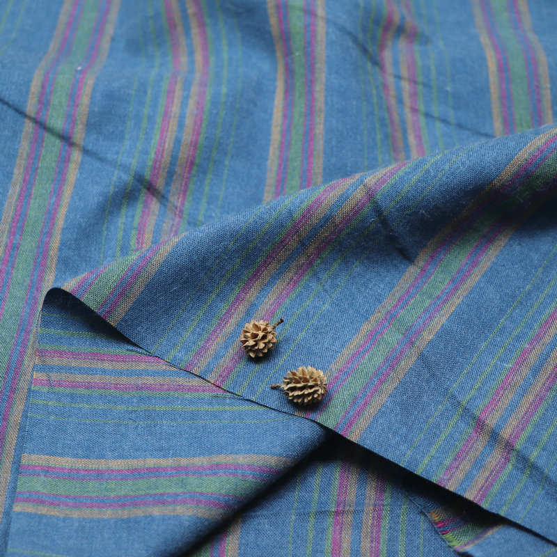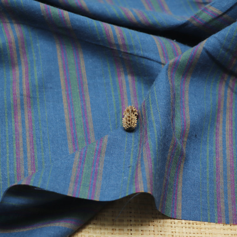 柔软亲肤复古蓝色条纹磨毛绒感涤棉布春秋连衣裙衬衫服装手工面料