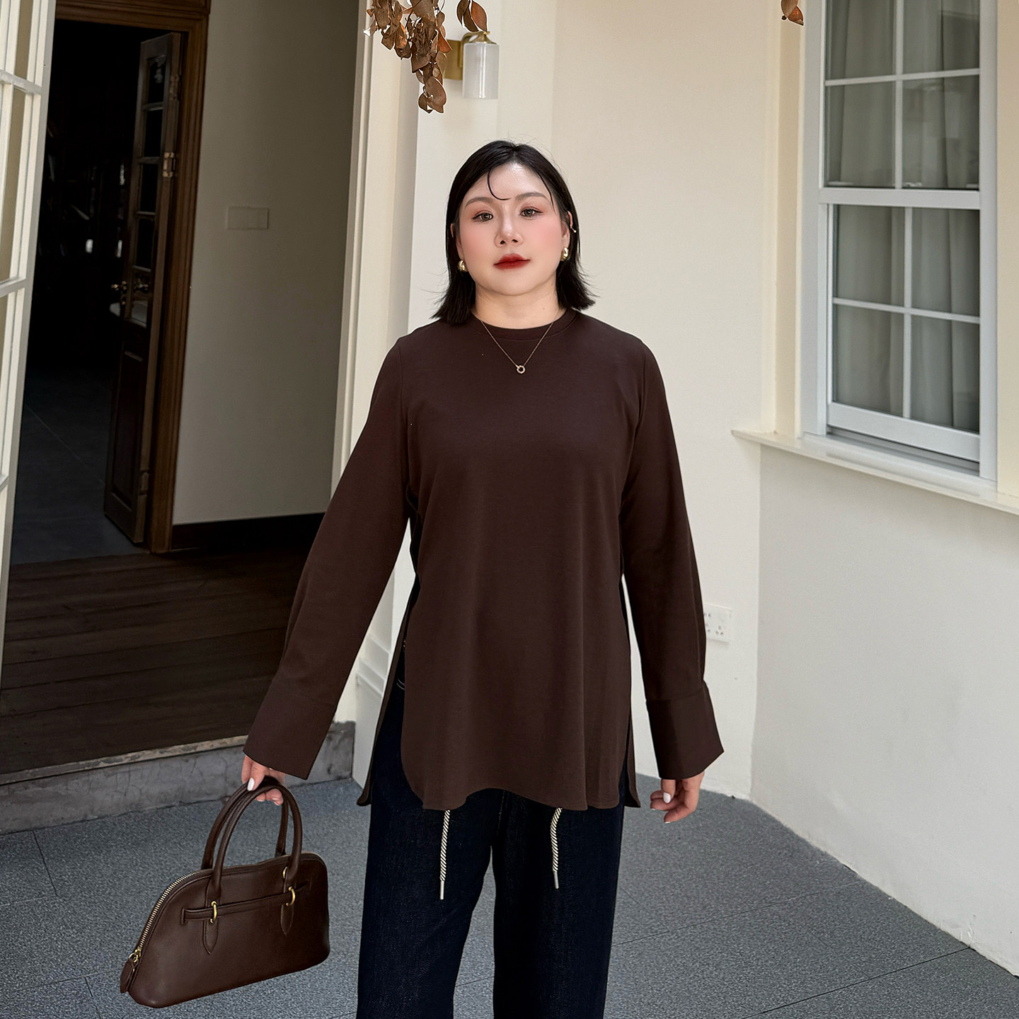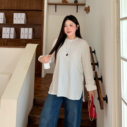 心存真大码女装宽松t恤2025年秋新款胖mm百搭显瘦长袖上衣打底衫