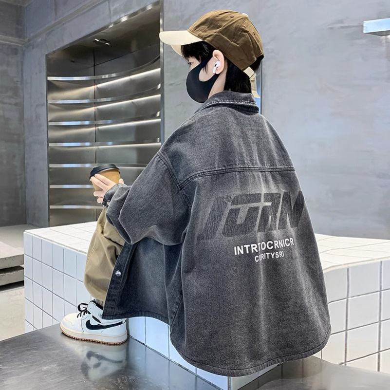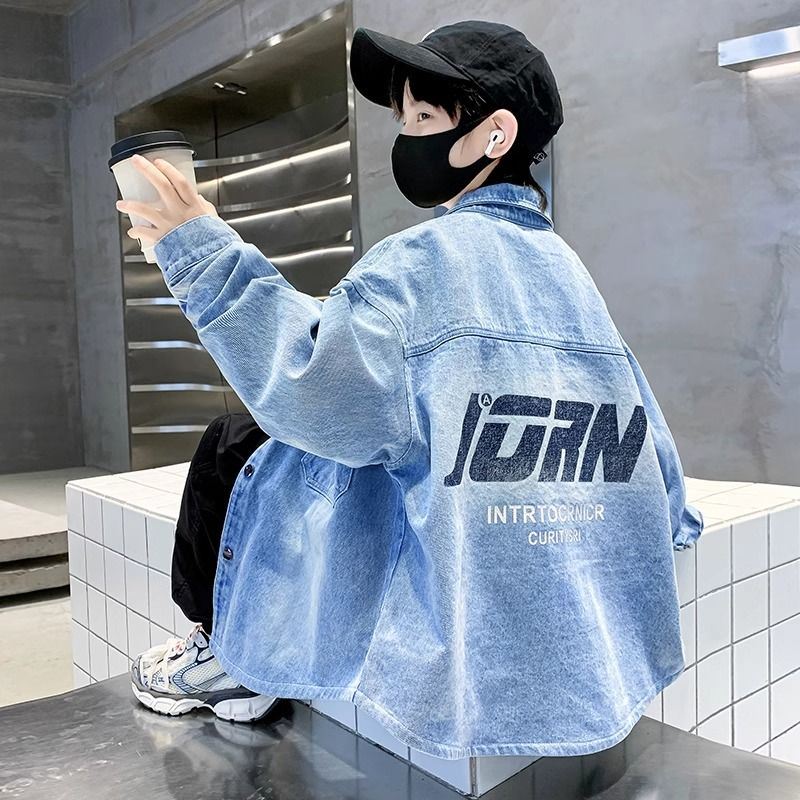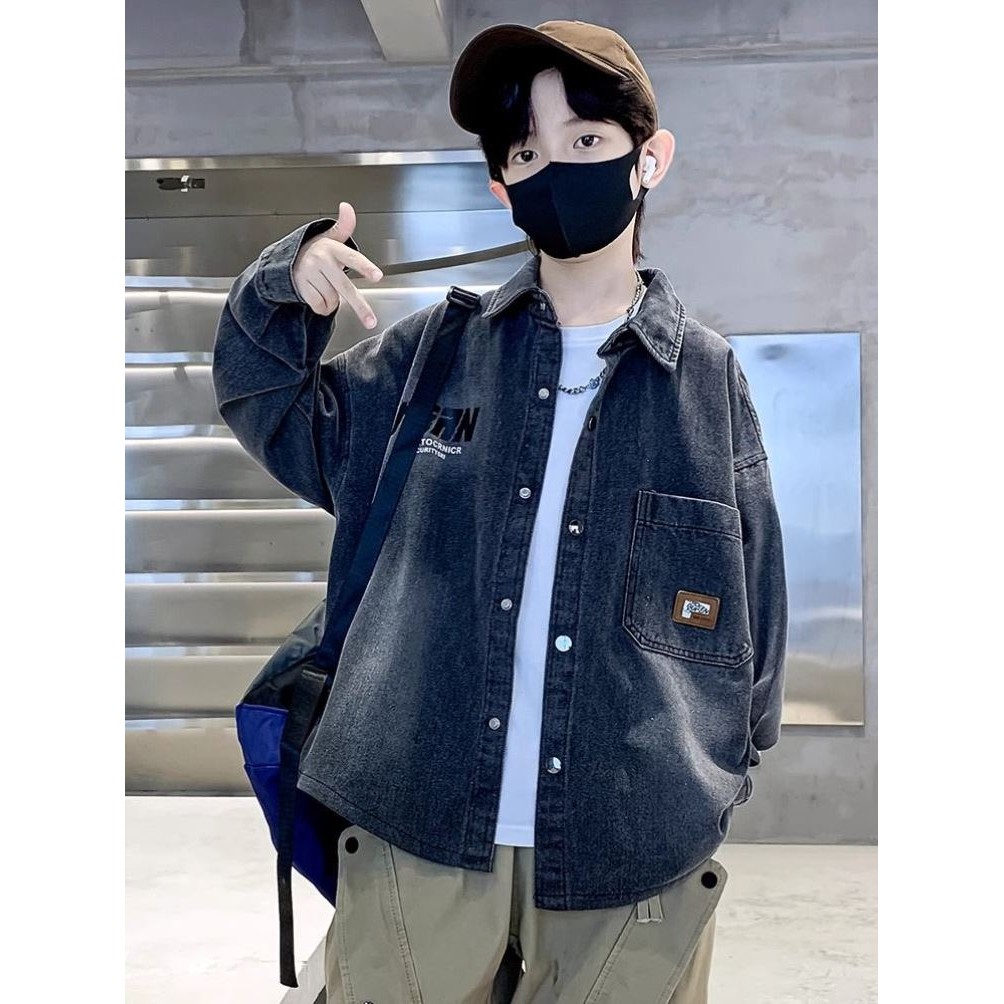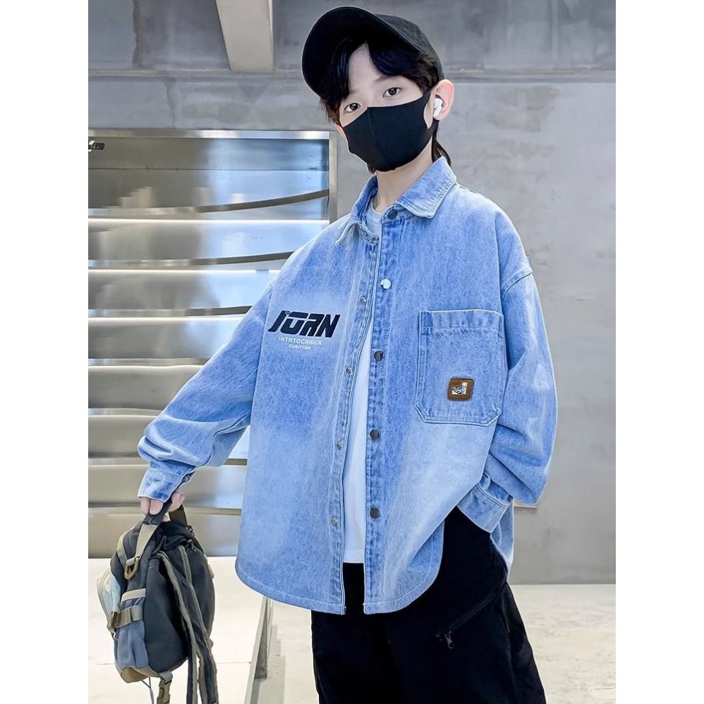 儿童牛仔衬衫男童秋装外套2024新款中大童秋季男孩春秋款爆款上衣
