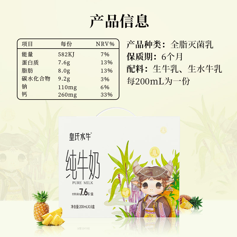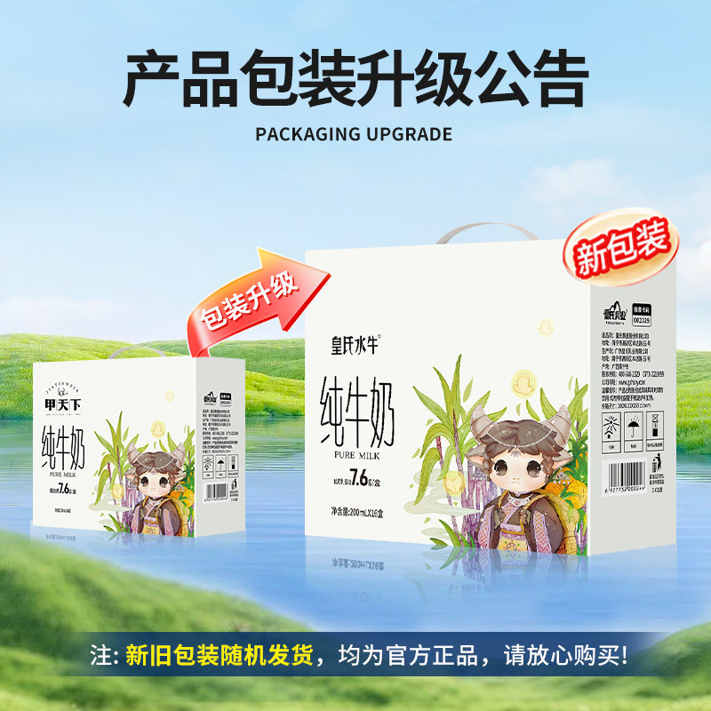 皇氏水牛纯牛奶200ml*16盒水牛奶配方儿童学生孕妇高钙牛奶整箱